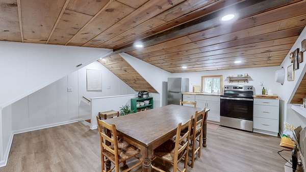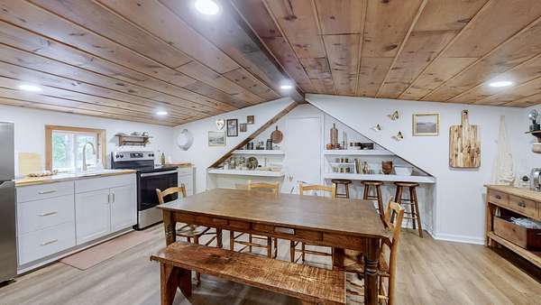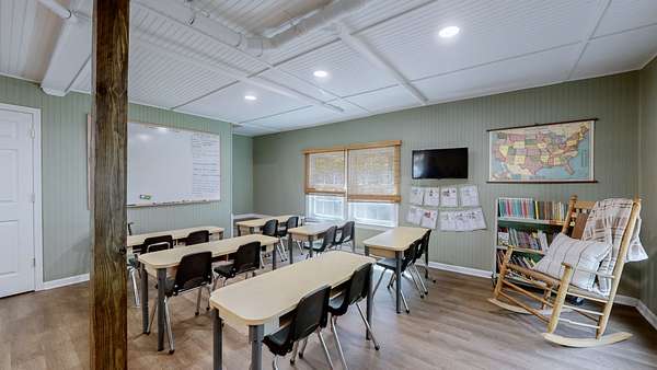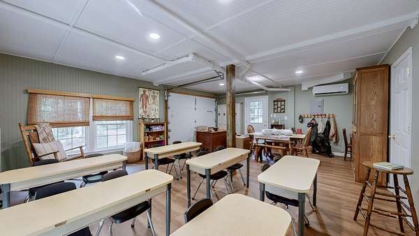 A standout feature is the fully renovated detached garage, now transformed into a one-room schoolhouse with an upstairs kitchen and half bath--ideal for homeschooling, a guest house, or a business.