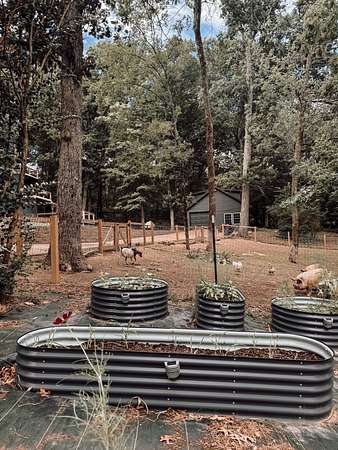 The fenced-in property includes separate gated areas currently used for gardening and livestock. Enjoy an abundance of fresh produce from blackberry bushes to peach and plum trees.
