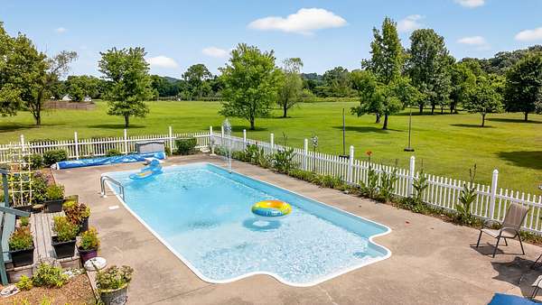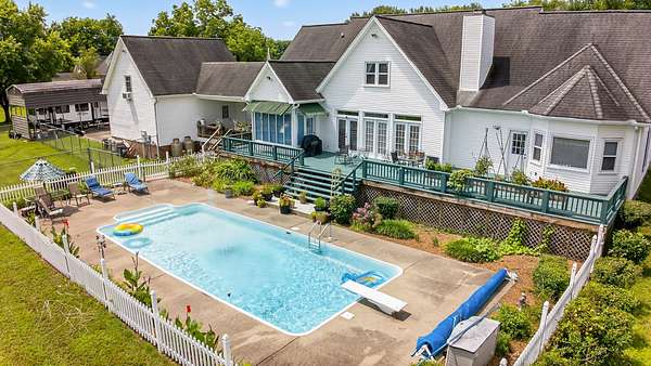 NEW FLOORING! Stunning home on 7.43 scenic acres. Peaceful living with all the space and flexibility you can imagine. Outdoor space galore.Rocking chair front porch competes only with expansive back deck that expans the entire back of this beautiful home.Overlooks inground pool and priceless view of gorgeous land.
