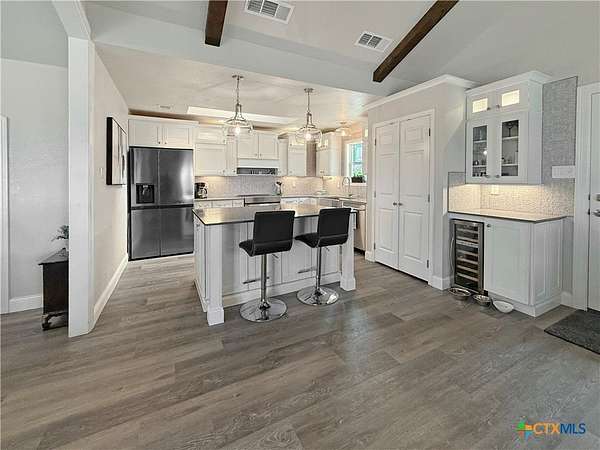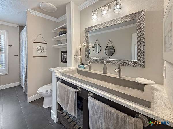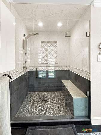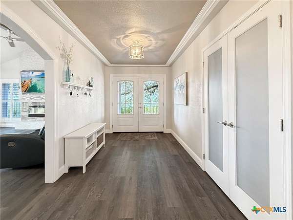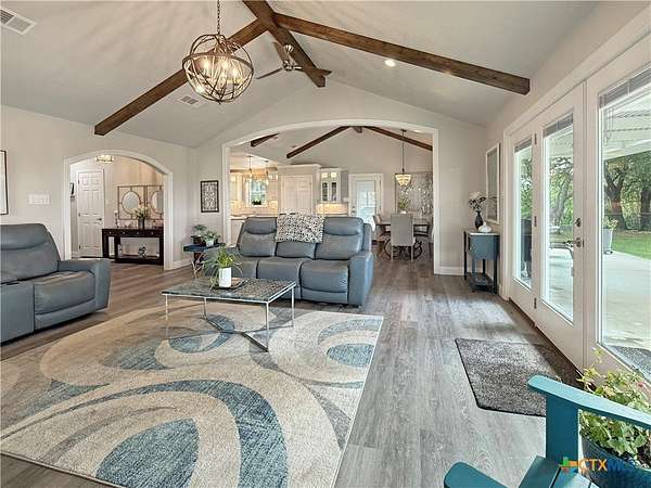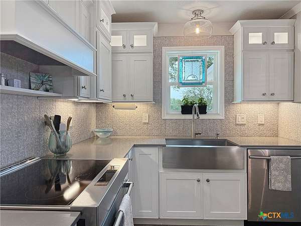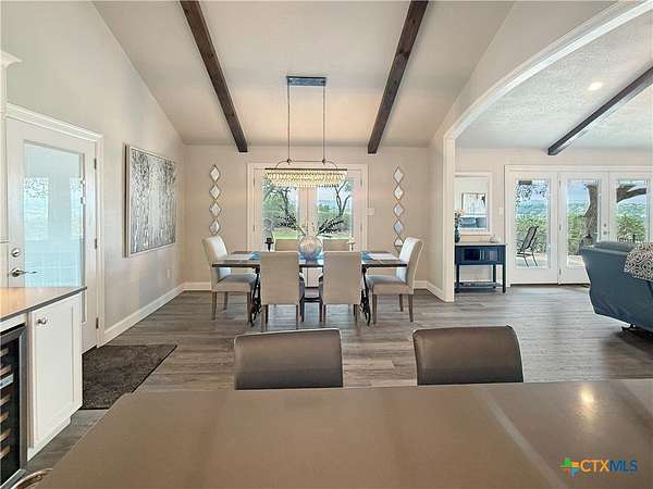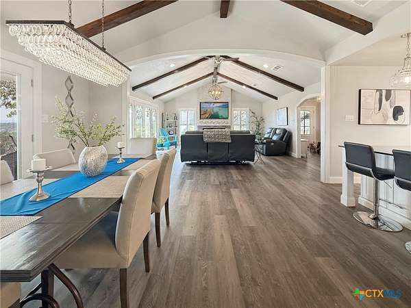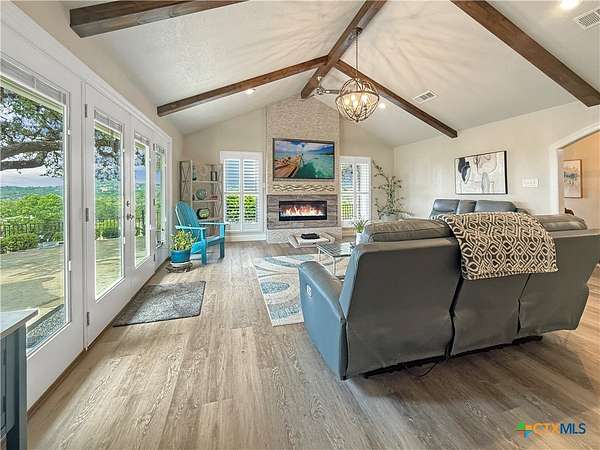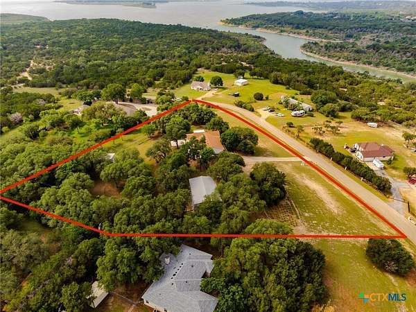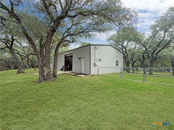 NOW $598,000 + Seller Concessions available to help offset closing costs + some of the home furnishings could convey to the New Home Owners with an acceptable offer. Make this amazing 3-bedroom, 2-bath,fully remodeled Gem of a Home yours today. Imagine your very own Hilltop with Lake Views! Quietly nestled at the end of a secluded cul-de-sac on 2.5 Acres on a Prime Hilltop overlooking StillHouse Lake, this property is truly One Of A Kind. The true meaning of peace, privacy, and modern convenience throughout this splendid Home. But wait,, did I mention there is a also a climate controlled 30x50 metal building with framed in living quarters, complete with running water, and a full bath. As if that is not enough, let me tell you about the full size Car Lift made possible by the 14ft high ceilings, RV HookUPs, and 220v power throughout. The kind of workshop one just dreams about! Now Let me tell you about the Home where no detail was overlooked. The interior has been completely transformed-from top to bottom-with stylish upgrades, premium finishes, and a contemporary open-concept layout. Enjoy a spa-like master bath featuring a fully tiled walk-in shower with a luxurious raindrop shower. The views from inside are majestic. Outside the property shines just as bright with mature trees, two storage buildings, and almost zero traffic. This rare gem offers a tranquil, private lifestyle without sacrificing modern comfort. Whether you're enjoying morning coffee with lake views or working in your climate-controlled shop, this meticulously maintained home feels and looks brand new. Don't miss this one-of-a-kind property-schedule your private tour today and experience the best of Hill Country living! ** All Property Lines in Pictures are for approximate visual reference. Buyer to verify exact property lines using Survey.