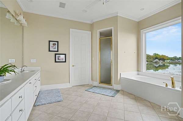 - Breakfast Area, Built-In Features, Cathedral Ceiling(s), Double Vanity, Entrance Foyer, Fireplace, Gourmet Kitchen, High Ceilings, Jetted Tub, Kitchen Island, Main Level Primary, Pantry, Primary Suite, Programmable Thermostat, Pull Down Attic Stairs, Recessed Lighting, Separate Shower, Sitting Area in Primary, Split Bedrooms