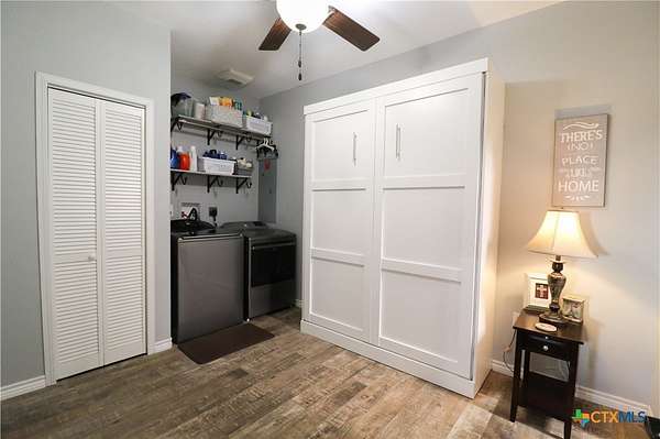 Look at this beautiful custom-built barndominium home sitting on 20.02 acres in the Texas Hill Country within 90 minutes from Austin, including utilities in place! There is also an additional 20.02 acres with water and electric utilities available for purchase for a total of 40+ acres and a home! There are endless opportunities with this fenced and cross fenced property, providing perfect panoramic views of rolling hills, wildlife, hunting, farming, and ample room for livestock on the remaining property if desired. The 1800 sq ft main house is cozy and comfortable, with amazing attention to detail throughout. Play your favorite music on the Bose system as you enjoy open kitchen to living spaces. This home offers two bedrooms, two full baths, and a laundry room big enough for a Murphy bed! The 20 x 30 primary suite is super spacious including two oversized walk-in closets, an amazing walk-in shower, dual vanities, smart lighting, all controlled by a personal mini split AC system. The property includes solar panels, and has a room ready for your personal generator equipped to run everything if you need! Reverse osmosis is available in the kitchen, along with two water softeners and filtration systems for amazing water. This property is perfect for off-grid minded individuals! Other improvements include a separate 800 sqft structure currently used as an office/storage. 300 Sqft is the finished-out office including electricity, and a personal mini split AC. Ethernet cable and is hardwired to the main house, so the office is fully operational! The remaining 500 Sqft is a garage/ storage with its own mini split AC as well! There is also an extra 12 x 24 storage building for all your outside equipment needs, a smaller shed for more storage, and a covered shelter for the cattle on the backside of the property. Don't miss this chance to have a piece of the Texas Hill Country!