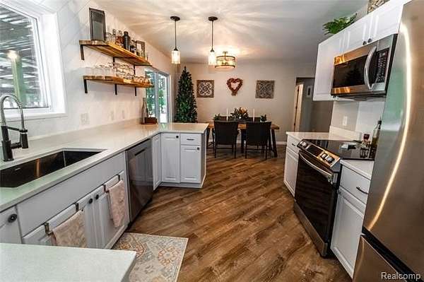 Fully custom, completely remodeled ranch offering 3 bedrooms and 2.5 baths on a private 3.22-acre setting. This home has been updated from top to bottom and truly shows like new. The custom kitchen features quartz countertops and high-end finishes, along with top-of-the-line fixtures throughout the home. All bathrooms are fully updated and include modern touches such as backlit mirrors. You'll also find all new flooring, fresh paint, new trim, new doors and new windows throughout. The fully finished basement doubles your living space. Outside features new siding and a hard-to-find heated 2.5-car garage. If you're looking for a move-in-ready, fully custom, one-of-a-kind home where the work is already done, this one stands out.