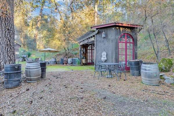 A Hidden Sanctuary on Nearly 3 Acres. Discover an extraordinary slice of heaven where creativity, nature, and serenity exist in perfect balance. Spanning approximately three acres, this rare property offers far more than space-it offers an atmosphere that restores, inspires, and invites connection. Gently winding, wheelchair-accessible paths travel throughout the entire property, guiding you through thoughtfully designed grounds filled with artistic touches, handcrafted elements, and peaceful gathering spaces. At the heart of the land are two private natural waterfalls, creating more than scenic beauty-their soothing cadence forms a deeply tranquil environment ideal for meditation, reflection, or simply slowing down. Thoughtfully designed outdoor spaces support both intimate gatherings and larger events, while the commercial overlay allows for flexible live/work or creative use. An RV hookup, outdoor service areas, and versatile outbuildings enhance the property's functionality and potential. The residence reflects the land's thoughtful design that is wheelchair-accessible kitchen and bathroom provide ease and comfort, while natural materials and custom details create a warm, inviting home that feels seamlessly connected to its surroundings.