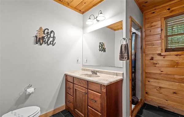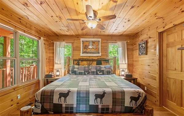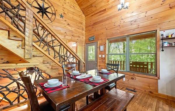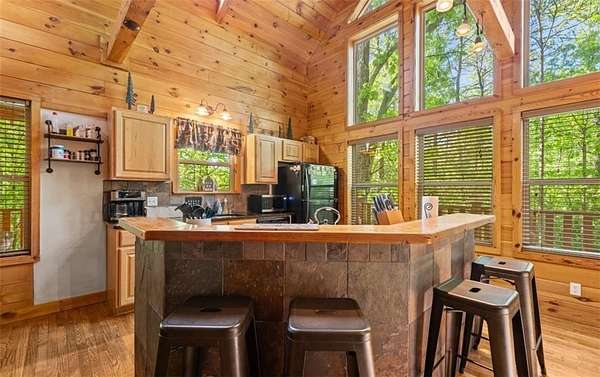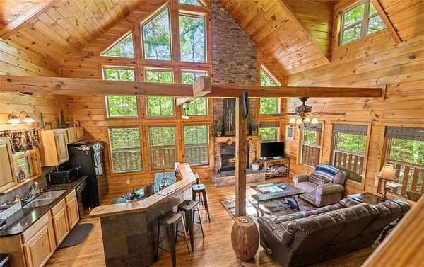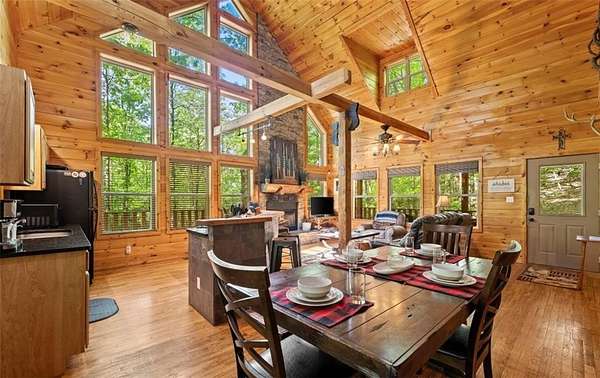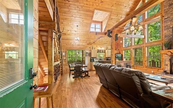 Welcome to a dream mountain retreat that doubles as a proven investment opportunity. Set on 3.1 private wooded acres, this fully furnished cabin blends upscale comfort with rustic charm. The home features two bedrooms and three bathrooms, with flexibility for an additional bedroom on the terrace level, making it ideal for families, groups, or short term rental guests. Inside, the inviting living space showcases exposed wood beams, a dramatic stone fireplace reaching the vaulted ceiling, and a wall of windows that fills the home with natural light and peaceful forest views. The well appointed kitchen offers modern appliances and flows seamlessly into the dining area, perfect for gathering and entertaining. Relax and recharge in the private sauna or unwind in the hot tub surrounded by nature. Outdoor living is just as impressive with a fire pit ideal for evenings under the stars. The terrace level is a true highlight, offering a spacious game room designed for fun and entertainment, complete with room for billiards and arcade games. In addition to being a personal getaway, this cabin is a strong income producing property with a documented short term rental history. Whether you are looking for a mountain escape, an investment, or both, this property delivers. Schedule your private showing today and experience mountain living at its best.