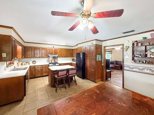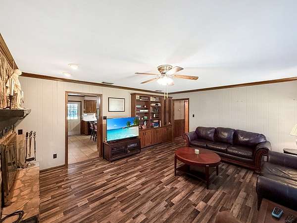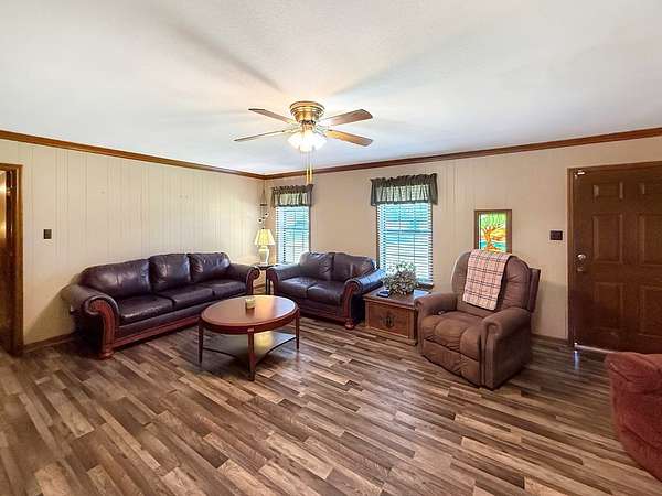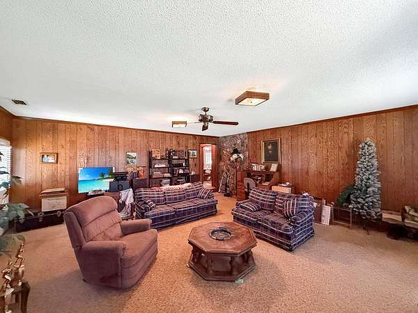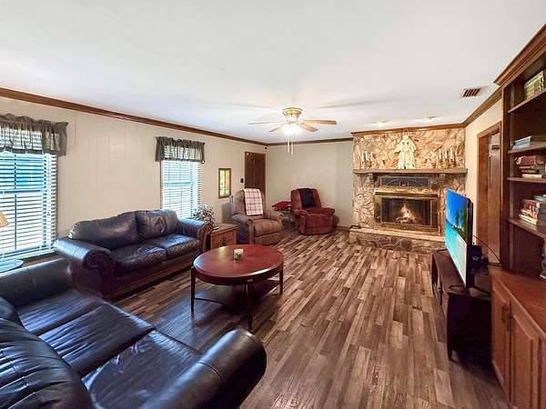 This is a home that has been filled with years of gatherings, laughter, and the steady presence of friends and family. On a little more than six acres in Colquitt, at the corner of Brooks Street and Thompson Town Road, sits a home with a steady, welcoming presence from the moment you arrive. With nearly 2,400 square feet, this three-bedroom, two-bath property offers a space that has been well-loved over time. Step through the front door and the comfort is immediate as the built-in bookshelves and the fireplace in the living room create a calm, familiar atmosphere. The living room opens into a large kitchen and dining area designed for cooking big meals and bringing people together, with cabinets lining the walls and plenty of room for the heart of the home to stay busy. Just off the kitchen is a spacious laundry room with a sink and a storage closet, along with a massive den that can serve as a game room, an additional living area, or a place to spread out, with a door leading outside. The primary bedroom offers a private bathroom and generous closet space, and the additional bedrooms carry the same sense of ease. A screened porch provides a quiet place to unwind in the evenings and outside the large covered patio doubles as a carport with room for four vehicles. Storage is easy here with plenty inside and even more outside, including a large workshop with power and a barn that brings that true country feeling home. The land around this home stretches out with a quiet ease that is hard to find, offering room to breathe and space to make your own. The workshop and barn open the door to endless possibilities, whether you enjoy projects, hobbies, or simply having the freedom to spread out. It is the kind of property that invites you to slow down and stay awhile. This property is not for rent and not available for owner financing. Proof of funds or a pre-approval letter will be required before scheduling an appointment.