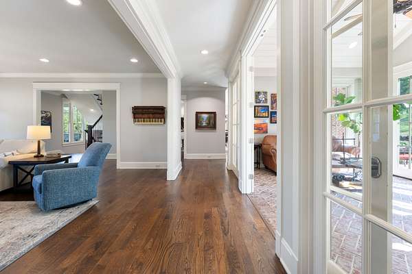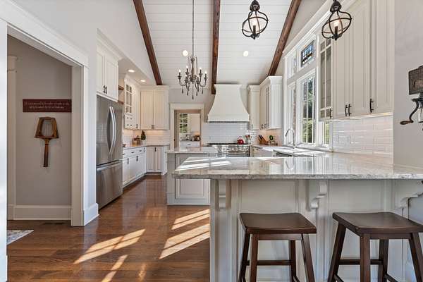 Extraordinary in every detail and unmatched in quality — this 6,027 sq ft southern private retreat sits on nearly four private acres in the coveted corridor between Grassland, Franklin, and Cool Springs. From the sweeping front porch overlooking a beautifully treed yard to the warm, intentional interiors — hardwood floors, brick accents, a fireplace, Florida room, and a showstopping kitchen with wood beams, shiplap, granite counters, and a farmhouse sink — every finish has been considered. Five bedrooms, five full baths, a zoned primary suite, second main floor bedroom/study, ensuite bedrooms upstairs, a bonus/rec room with its own separate staircase over the garage, and a finished basement with a dark media room, wet bar, and guest suite make this layout as flexible as it is impressive. Add 674 square feet of dedicated storage and grounds built for privacy and entertaining, and you have something this market rarely sees. A home this special does not wait. Schedule your private showing today.
