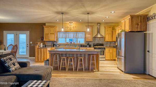 Beautiful ranch style home offering exceptional main level living on 29.6 acres!! The expansive kitchen is a dream, featuring rich hickory cabinetry, abundant counter space, a large island, double ovens, and stainless steel appliances! A spacious mudroom adds functionality with built-in cabinetry and a separate sink! Enjoy both a separate living room and family room, perfect for entertaining or relaxing! This home offers 4 beds and 3 baths, providing plenty of space and comfort for everyone!! Outside, you'll find a 40x45 shop complete with concrete floors, spray-foam insulation, and two overhead doors, ideal for hobbies, storage, or equipment! Peaceful, private, and thoughtfully designed, this property truly delivers main-level living at it finest!!!