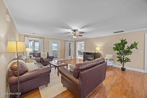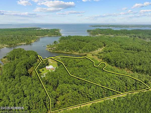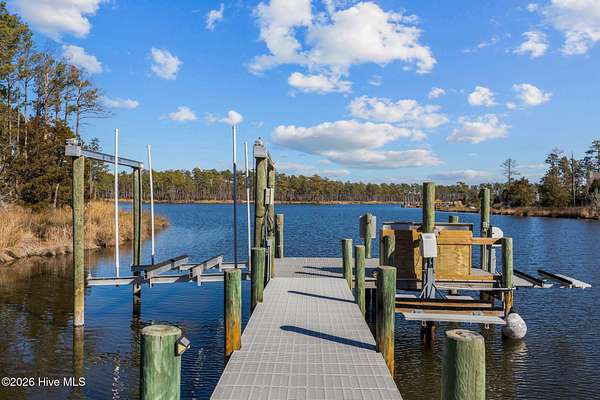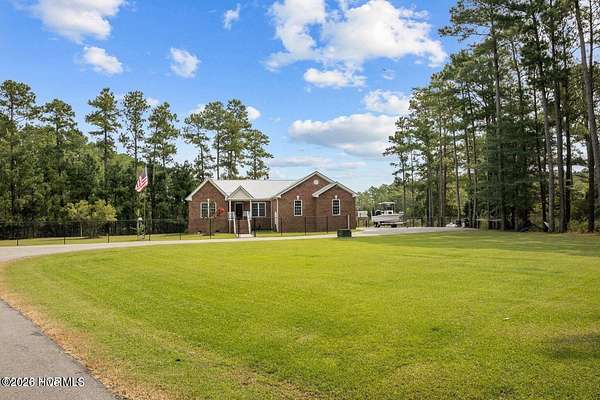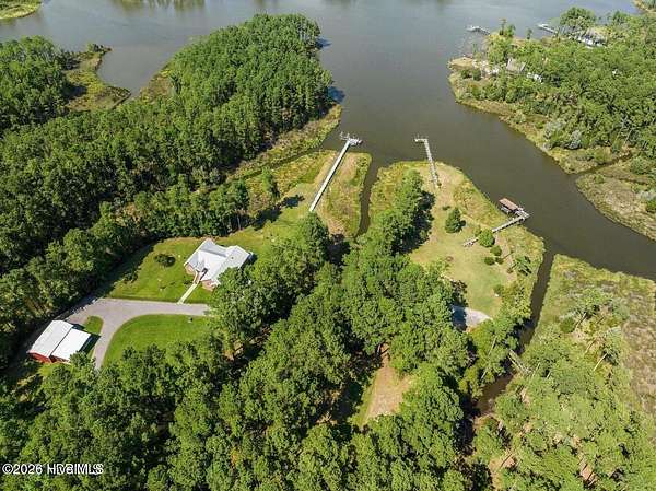 Imagine waking up to breathtaking water views every single day! This exquisite brick home is perfectly situated on a gorgeous lot, offering unparalleled privacy and tranquility.. This also offers a unique blend of luxury and comfort making it the ideal retreat for those seeking an exceptional lifestyle. Placed on 3 lots on 2 parcels over 12 acres total. It has a spacious great room, perfect for entertaining or relaxing, and a sunroom (heated and cooled but not included in square feet) where you can bask in natural light while enjoying panoramic water views. The sunroom leads onto a perfectly positioned deck where you can take in the beautiful water views! Inside, this split bedroom plan has 3 large bedrooms, 2 full baths, large kitchen, with a breakfast area facing the water with a view. For water enthusiasts, this property includes jet ski docks and a large pier, providing easy access to the water for endless fun. Plus, with quick access to the ICW and the Pamlico Sound, you'll have the freedom to explore the waterways at your leisure. A standout feature of this property is the detached garage, which includes six heated and cooled dog kennels, ensuring your pets are always comfortable. Don't miss the opportunity to own this remarkable waterfront home. Contact us today to schedule a private viewing and discover your new paradise! Out of the 12 plus acres This 4.89 acres features a brand new (2023) flow-thru pier, 10K lb. boat lift, 2 jet ski lifts, and a large heated/cooled garage with indoor/outdoor dog kennels with a mini split. The 2nd parcel (7.18 acres) includes lots 26 & 27 with a Septic System in place, electrical components for the 2 existing piers, a 10K lb Boat lift, portable jet ski docks, and a sink that is very convenient when coming off the boat. Home comes with a whole house generator (2017).