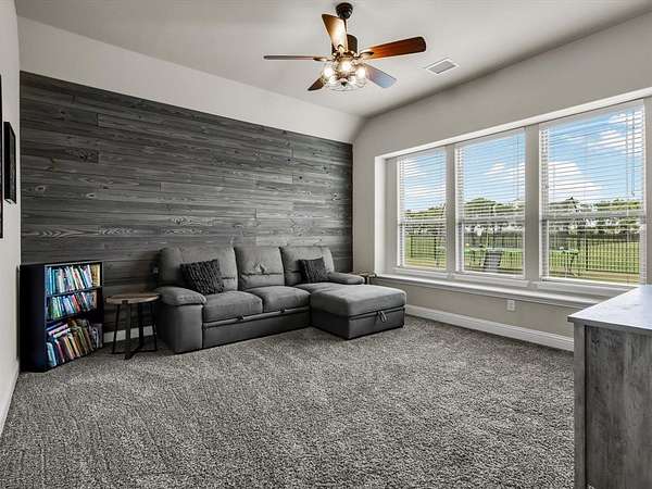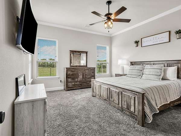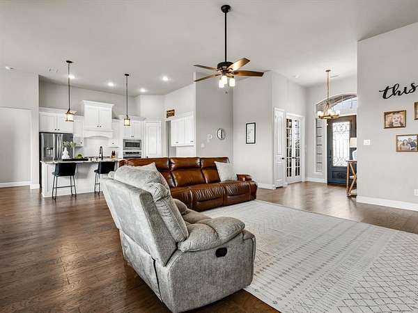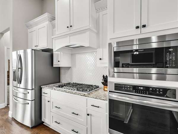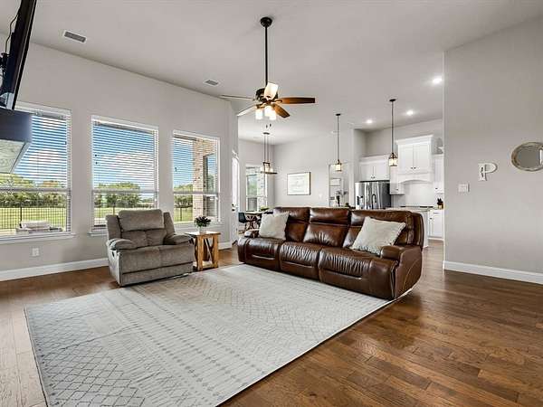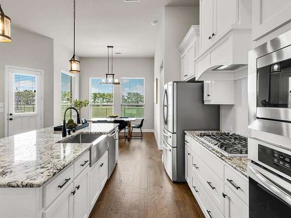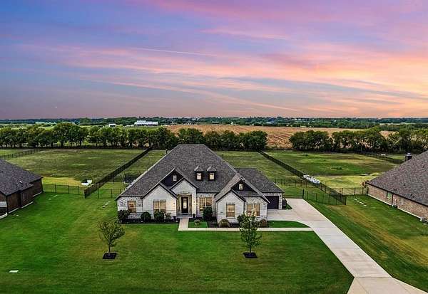 Discover luxury and comfort in this nearly new, sprawling single-story home, nestled on a peaceful 1.5-acre lot with a 3 car garage, in the highly desirable community of Heath, located within acclaimed Rockwall ISD. A striking iron front door welcomes you into a thoughtfully designed layout where style meets functionality. Rich hardwood floors guide you through an expansive light-filled open concept floorplan ideal for everyday living and effortless entertaining. At the heart of the home, the upgraded kitchen is equipped with Frigidaire Gallery stainless steel appliances, a 5-burner gas cooktop, granite counter-tops, oversized island with farm sink, and spacious walk-in pantry. The adjacent dining room allows plenty of room for the entire family to enjoy meals, and perfect for hosting gatherings. The private primary suite is separated from the secondary bedrooms for enhanced privacy, with a spa-like ensuite bath featuring dual vanities, soaking tub, oversized walk-in shower, and a Texas-sized walk-in closet. Each secondary bedroom includes an ensuite bath, providing comfort and convenience for family or guests. Movie nights and game days are a hit for adults and kids in the dedicated media room, offering a perfect space for family fun and relaxation. Step outside to your expansive covered and open patio overlooking the backyard of your dreams where you'll fall in love with beautiful Texas sunset skies. With 1.5 Acres fully fenced, you have plenty of room to add a pool, outdoor kitchen, or entertainment space, your backyard can become the ultimate outdoor oasis, the possibilities are endless. Don't miss the opportunity to own this exceptional home that perfectly balances peaceful country living with modern elegance. NO MUD. NO PID.