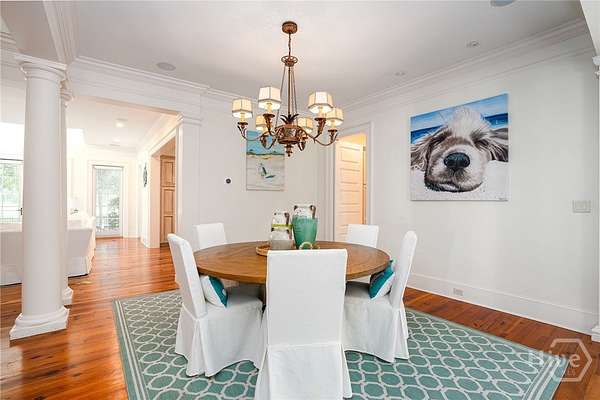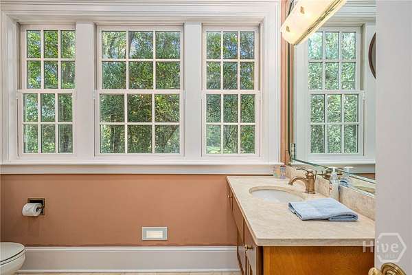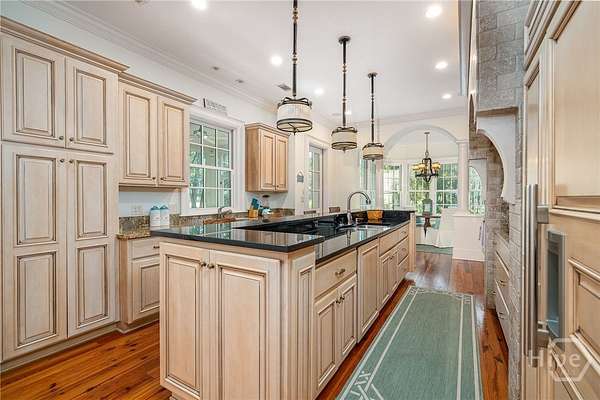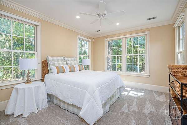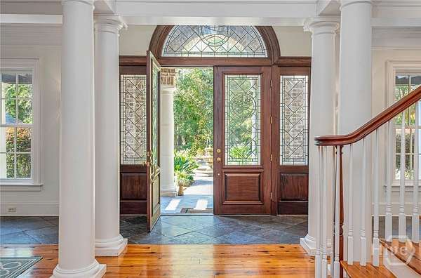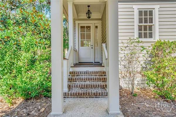 Tucked deep within the Ford Field & River Club, this estate feels like a private world of its own. A brick walkway winds through lush gardens and past a timeless fountain before guiding you to the home's gracious entrance. Step inside and the sunlit living room invites you in, opening seamlessly to the formal dining room, gourmet kitchen, and breakfast nook-spaces made for lingering conversations and effortless gatherings. The main-floor primary suite offers a quiet escape, while upstairs, two bedrooms each reveal their own private balcony with views of the beautiful grounds. Mornings are best spent on the screened-in porch, watching the third hole of the award-winning Pete Dye golf course come to life. A breezeway leads to a fully appointed guest cottage and a charming carriage house above the garage, creating a retreat that feels both timeless and perfectly complete.