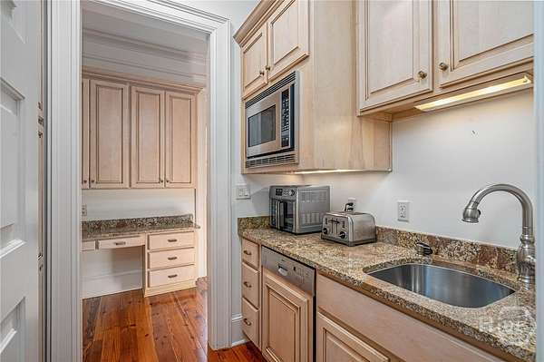 - Breakfast Area, Breakfast Bar, Built-In Features, Ceiling Fan(s), Gourmet Kitchen, High Ceilings, Kitchen Island, Main Level Primary, Pantry, Primary Suite, Recessed Lighting, Wet Bar