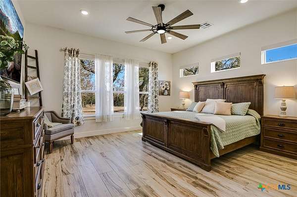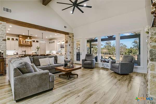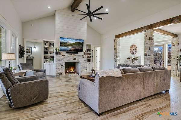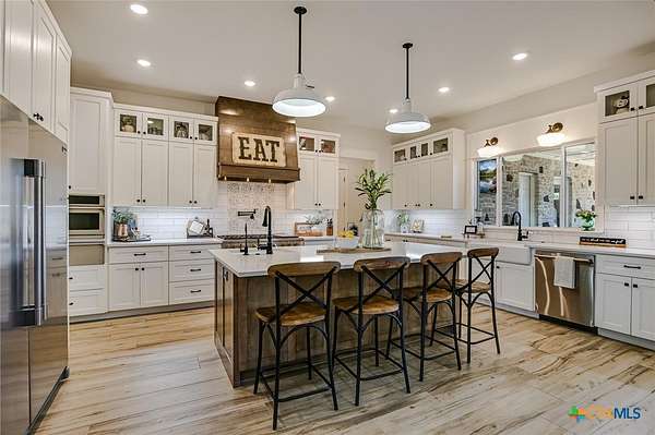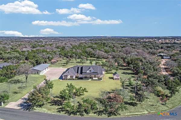 Modern Acreage Living with Luxury Shop & Flex Space - Designed for both everyday comfort and long-term flexibility, this custom 4-bedroom, 4.5-bath home sits on 2.67 acres with no HOA-offering the freedom today's buyers are searching for. The thoughtfully designed floor plan includes two private suites plus two additional bedrooms connected by a Jack-and-Jill bath, creating an ideal setup for multi-generational living, guests, or growing families. The primary suite is spacious and refined, featuring dual vanities, separate his-and-her closets, and an oversized walk-in shower. Natural light fills the open-concept living area, highlighting beautiful stone accents and seamless flow between kitchen, dining, and family room. The kitchen was designed for serious functionality and entertaining alike-complete with a large quartz island, walk-in pantry, butler's pantry with ice maker, floor-to-ceiling cabinetry, and abundant prep space. A dedicated media/game room with full bath and walk-in closet offers flexibility as a fifth bedroom, private guest suite, or secondary living area. Step outside to a true year-round outdoor retreat featuring a propane fireplace, built-in griddle, sink, and bar seating-perfect for hosting or unwinding after a long day. What truly elevates this property is the 1,035 sq. ft. climate-controlled workshop with dual electric roll-up doors, sink, and heat & air. Attached is a 465 sq. ft. office with full bath and walk-in closet-ideal for a home-based business, studio apartment, fitness room, or private workspace. RV hookups, additional covered parking, and full utility connections add even more versatility. Located just minutes from the newly extended 183A Toll and Highway 29, with Target, Costco, and expanding retail nearby, this property offers the rare combination of space, function, and convenience within Liberty Hill ISD. A nearly-new custom home with this level of flexibility, acreage, and location is increasingly hard to find.
