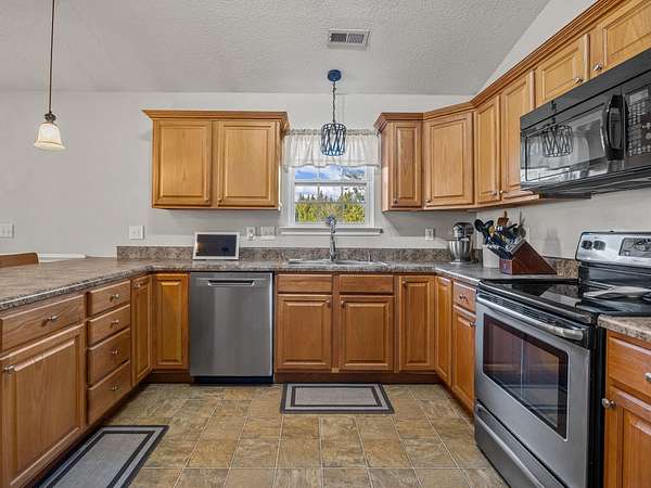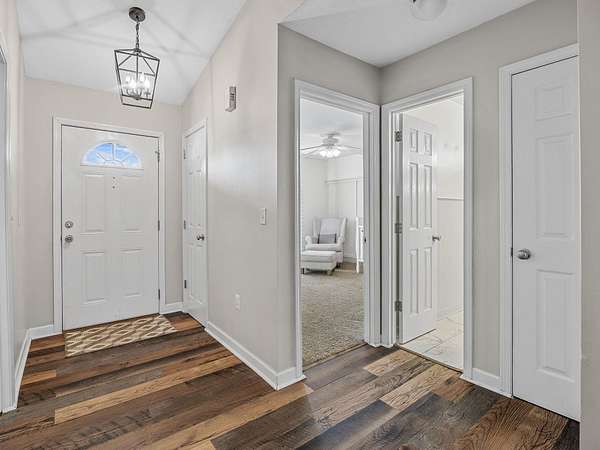 Welcome home to this beautifully situated 4BR/ 2BA property on 1.69 acres, tucked away on a quiet cul-de-sac. The open floor plan offers a seamless flow for everyday living and entertaining, filled with natural light and comfortable living space. The spacious primary suite is a true retreat, featuring a walk-in closet and a private bath with dual vanities, a separate shower, and a relaxing jetted tub. One additional bedroom offers flexibility and can easily serve as a home office or study. Enjoy the convenience of a dedicated laundry room. Just minutes from shopping, dining, and schools. Step outside to a screened porch overlooking a fenced backyard: perfect for pets, play, or relaxing evenings. Additional highlights include owned solar panels that help reduce electric bills, ample outdoor space, and a prime location that blends privacy with accessibility. This home offers comfort, efficiency, and scenic charm. Don't miss the opportunity to make it yours!