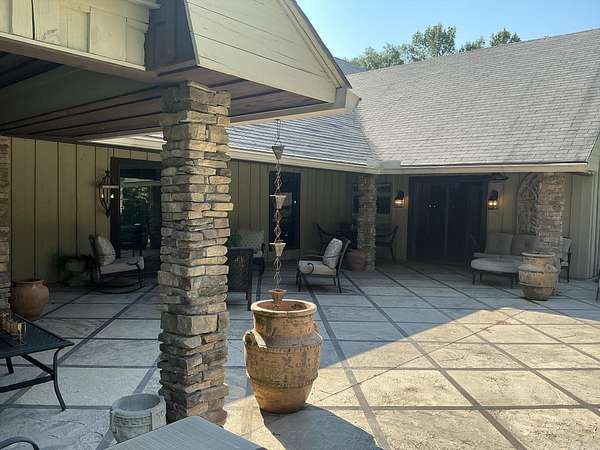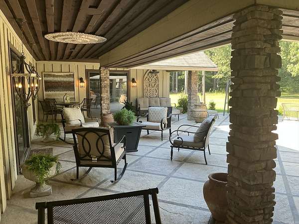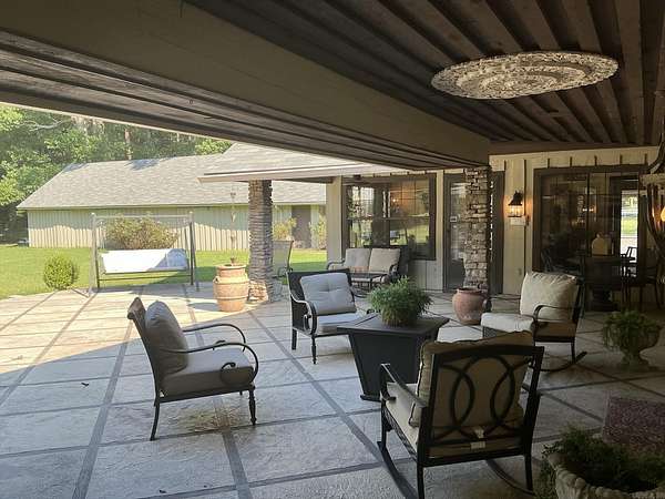 Beautiful Cypress home offers approximately 3,200 square feet of living space. Cypress wood/stone featured throughout interior/exterior, complemented by 40 ambient can lighting both inside/out.The spacious living room includes wood-burning gas fireplace, brick seating, recently updated with stone accents matching 27 stone columns/walls throughout home .The formal dining area is open to the formal living room. Decorative concrete flooring flows seamlessly through the interior and out to the back patio, unifying spaces. The kitchen features new Cafe appliances, granite countertops/decorative tile backsplash, textured faux-finish walls, pantry, and breakfast area, access to laundry room/half bath. Master suite includes walk-in closet, carpeted flooring, master bath with double vanities. Two additional bedrooms. Two full bathrooms are located on the opposite side of the home with bedrooms. Large den with Cypress walls & decorative concrete flooring, can serve as a fourth bedroom. 3 Glass doors lead to a spacious covered patio. Other features include 2 hot water heaters, new HVAC, insulated windows,1,600 sq ft floored attic, roof 2018. For more info see Brochure displayed at the home.