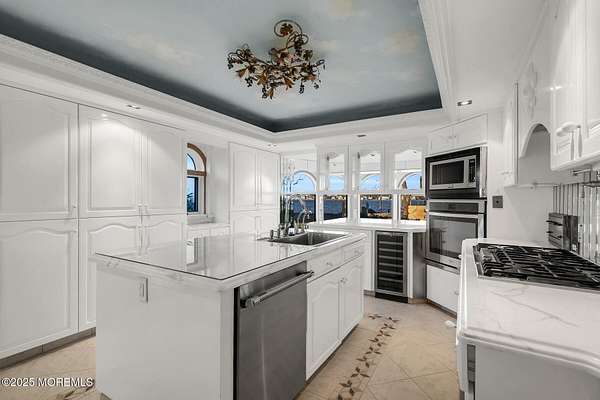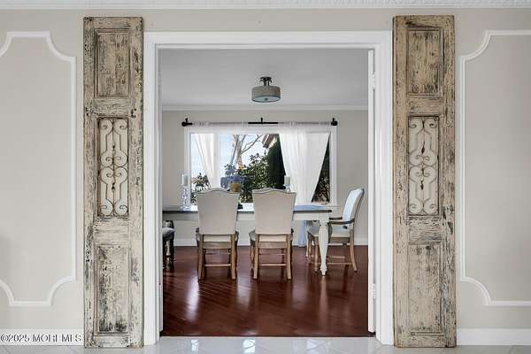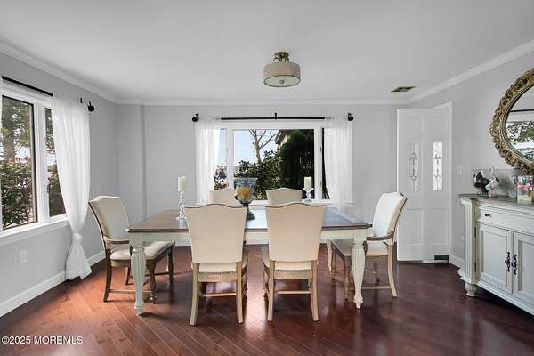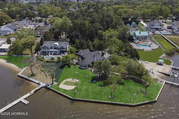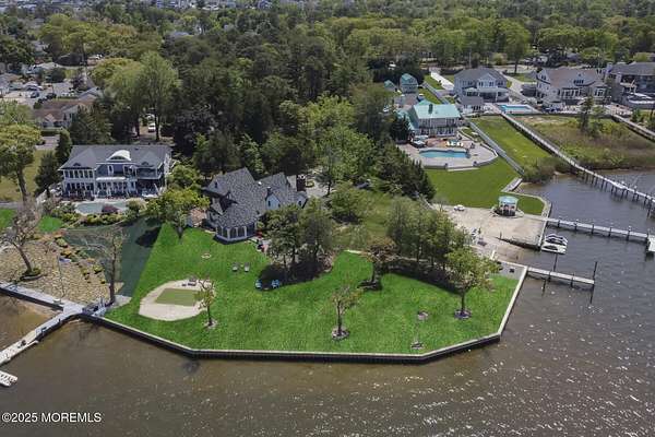A True Waterfront Unicorn in Toms River! Discover over 2.5 acres of unparalleled privacy, surrounded by mature specimen trees and lush vegetation. A long, winding driveway leads you to a grand courtyard with a water fountain and over 250 feet of brand-new vinyl bulkhead featuring a pier dock-perfect for boating and waterfront living. This one-of-a-kind property is among the largest open-water parcels in Toms River, offering uncapped potential to craft a private estate unlike any other. The home showcases Tudor-style architecture, with expansive formal rooms that offer breathtaking views of Kettle Creek. The gourmet kitchen is adorned with Afghan marble countertops, and the cathedral-ceiling dining room boasts a full wall of windows overlooking your private peninsula. Radiant hot water floors on 1st floor and soft water filtration system. Detached 2 car garage with loft for storage above. A rare opportunity to own a legacy propertyjust minutes from the Garden State Parkway, iconic Jersey Shore beaches, shopping, and dining.