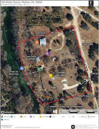 Four (4) lots, totalling 3.3 acres, 6ft+ deep live water Medina River swimming hole!