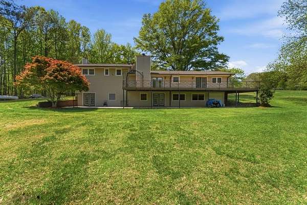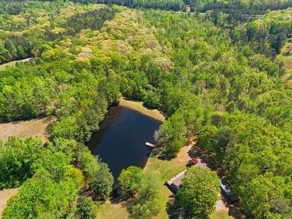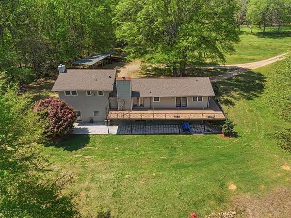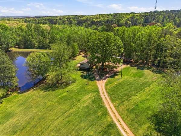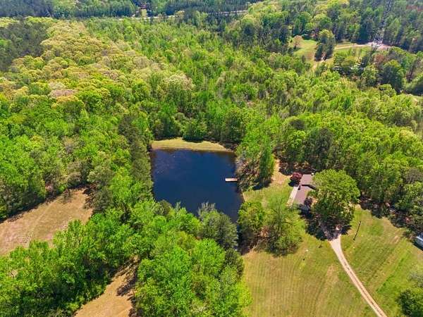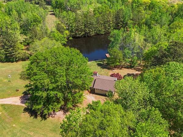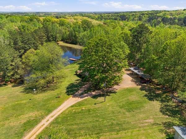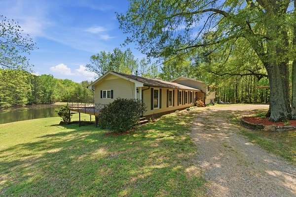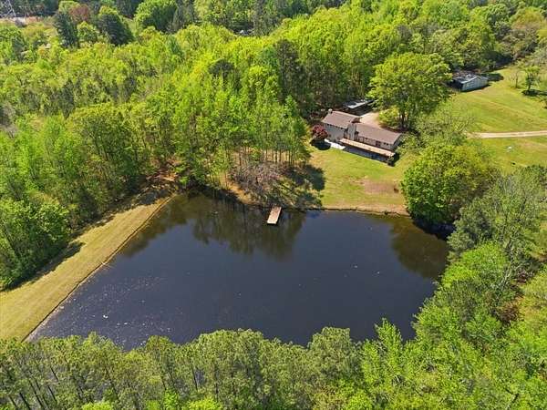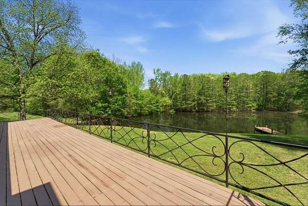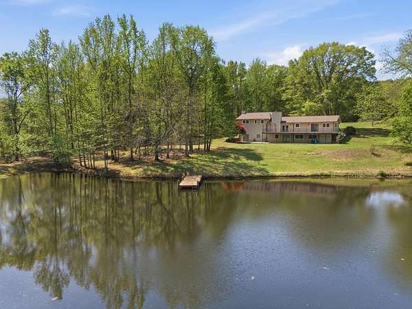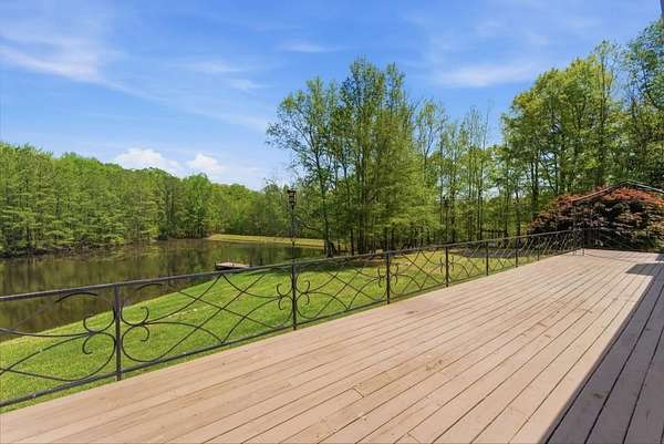 Charming Lakefront Retreat on 9.5 Acres - Private, Peaceful, and Move-In Ready! Experience serene country living on this stunning 9.5-acre property featuring a fully stocked lake with brim, bass, and catfish, and breathtaking water views from an expansive wraparound deck. Whether you're seeking quiet relaxation or the perfect space to entertain, this home delivers both beautifully. Step inside to a light-filled, open floor plan with brand-new flooring throughout. The spacious kitchen is designed for gathering, offering a new oven, center island, oversized breakfast area, enormous laundry room, and a separate pantry. The fireside family room is warm and inviting, complete with a butler's pantry/wet bar and seamless access to the deck ideal for indoor-outdoor entertaining. The luxurious owner's retreat is a true sanctuary, featuring its own fireplace, a large ensuite bath with separate tub and shower, double vanities, and generous his-and-her closets. Upstairs, you'll find three additional bedrooms, two full bathrooms, and ample closet space for family or guests. The terrace-level basement offers incredible versatility with a massive living area, home office, gym space, additional flex rooms, and abundant storage. Step outside to an oversized covered patio and uncovered patio that opens to the backyard and peaceful lake setting. The patio runs the width of the house! Outdoors, enjoy a large barn perfect for equipment or hobby storage, a charming garden area ready for flowers or vegetables, and a swing to take in the tranquil surroundings. This home is not only beautiful but exceptionally well-built, featuring reinforced construction with poured concrete walls, extensive rebar support, J-bolt anchoring, and durable exterior framing. The lake is thoughtfully maintained with a siphoning system that regulates water levels and protects the property. With new windows installed throughout most of the home in 2018 and a location just minutes from schools, shopping, dining, and major retail, this property offers the perfect blend of privacy and convenience. A rare opportunity to own a one-of-a-kind lakefront retreat! Don't miss it! No AI here...just true photos of this amazing property! All public records reflect only 1.5 acres, but this is a full 9.5 acre property. Seller has the deed to prove.