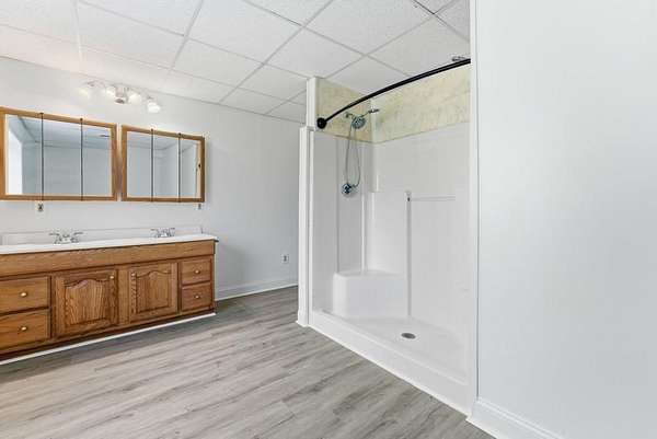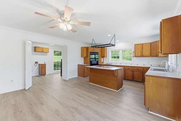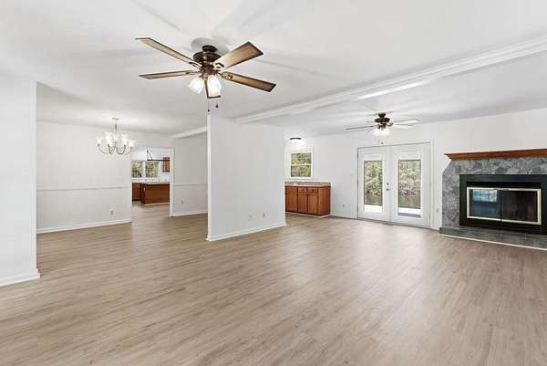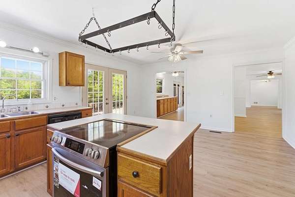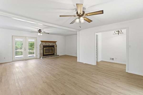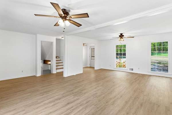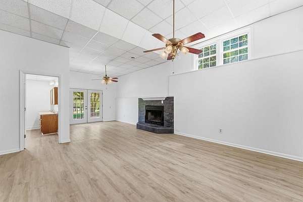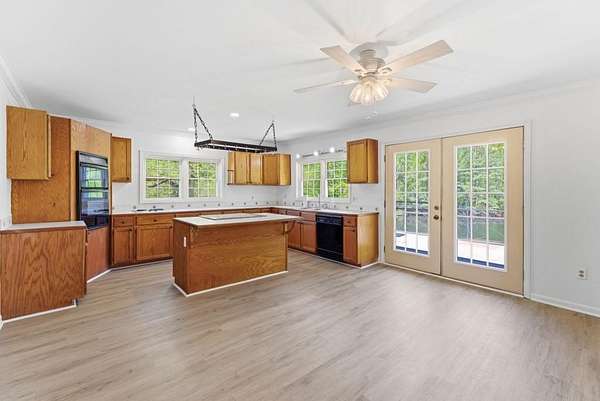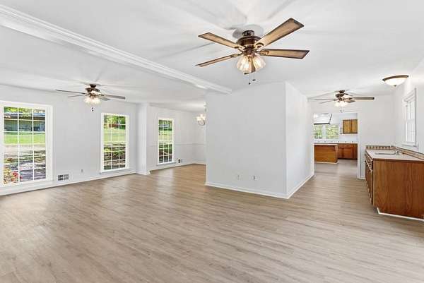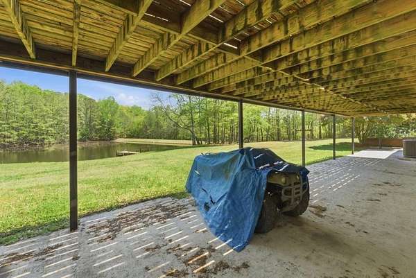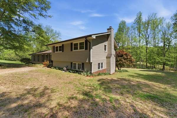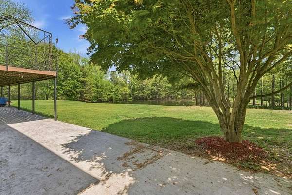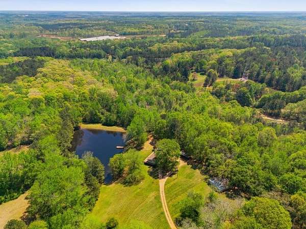 Charming Lakefront Retreat on 9.5 Acres - Private, Peaceful, and Move-In Ready! Experience serene country living on this stunning 9.5-acre property featuring a fully stocked lake with brim, bass, and catfish, and breathtaking water views from an expansive wraparound deck. Whether you're seeking quiet relaxation or the perfect space to entertain, this home delivers both beautifully. Step inside to a light-filled, open floor plan with brand-new flooring throughout. The spacious kitchen is designed for gathering, offering a new oven, center island, oversized breakfast area, enormous laundry room, and a separate pantry. The fireside family room is warm and inviting, complete with a butler's pantry/wet bar and seamless access to the deck ideal for indoor-outdoor entertaining. The luxurious owner's retreat is a true sanctuary, featuring its own fireplace, a large ensuite bath with separate tub and shower, double vanities, and generous his-and-her closets. Upstairs, you'll find three additional bedrooms, two full bathrooms, and ample closet space for family or guests. The terrace-level basement offers incredible versatility with a massive living area, home office, gym space, additional flex rooms, and abundant storage. Step outside to an oversized covered patio and uncovered patio that opens to the backyard and peaceful lake setting. The patio runs the width of the house! Outdoors, enjoy a large barn perfect for equipment or hobby storage, a charming garden area ready for flowers or vegetables, and a swing to take in the tranquil surroundings. This home is not only beautiful but exceptionally well-built, featuring reinforced construction with poured concrete walls, extensive rebar support, J-bolt anchoring, and durable exterior framing. The lake is thoughtfully maintained with a siphoning system that regulates water levels and protects the property. With new windows installed throughout most of the home in 2018 and a location just minutes from schools, shopping, dining, and major retail, this property offers the perfect blend of privacy and convenience. A rare opportunity to own a one-of-a-kind lakefront retreat! Don't miss it! No AI here...just true photos of this amazing property! All public records reflect only 1.5 acres, but this is a full 9.5 acre property. Seller has the deed to prove.