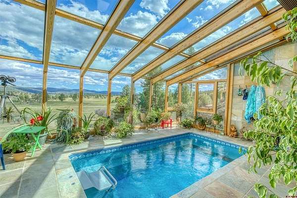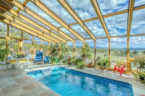 Bill Kinsley, Jann C Pitcher Real Estate, C: 970-946-1804, bill@janncpitcher.com, www.crenmls.com: Discover this extremely rare opportunity to own 40 pristine acres with sweeping mountain and valley views located within Pagosa Alpha. This exceptional property features a spacious 4,254 sq ft main residence, complemented by a 1,000 sq ft guest cabin, offering a combined total of 5 bedrooms and 3.5 bathrooms—perfect for multi-generational living, hosting guests, or generating rental income. Unwind year-round in the sunlit solarium, complete with a refreshing lap pool that brings the outdoors in while offering privacy and comfort.Equestrian enthusiasts will appreciate the two-stall metal barn and approximately 10+/- acres of usable pasture, ideal for horses or livestock. A 3-car garage provides ample space for vehicles, tools, and recreational equipment.Whether you're seeking a private mountain escape, a working homestead, or a scenic investment property, this remarkable estate offers the perfect blend of space, versatility, and breathtaking natural beauty.