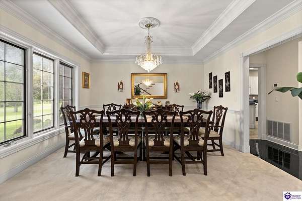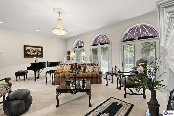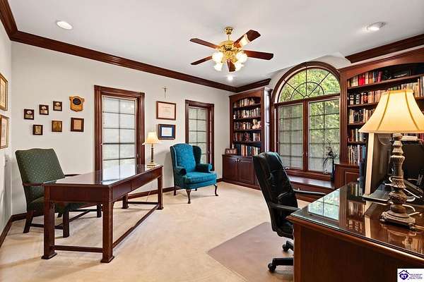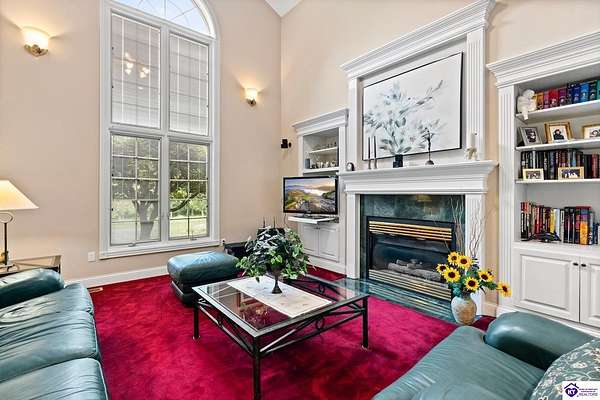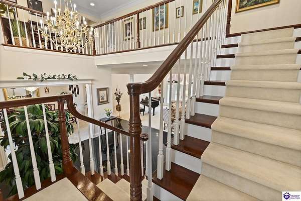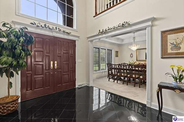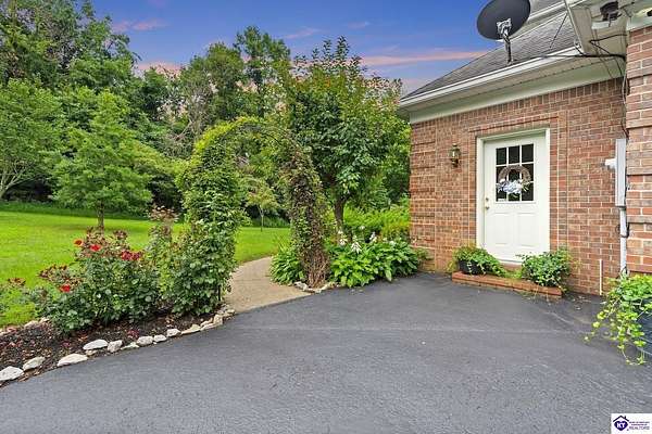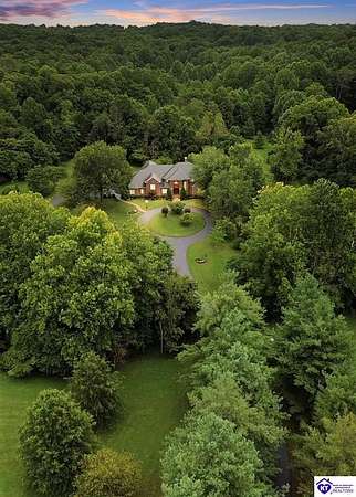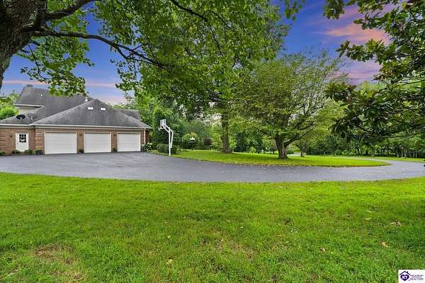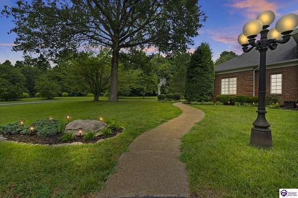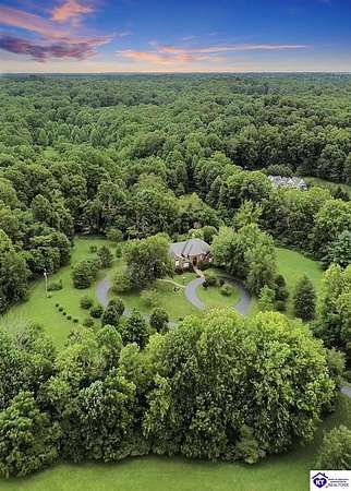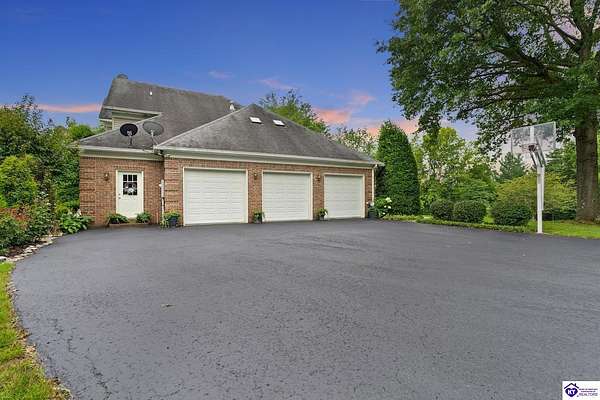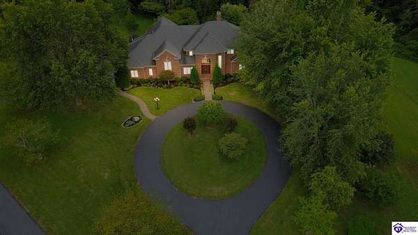 Welcome to this stunning custom built estate sitting on nearly 10 private acres in the heart of Elizabethtown. From the moment you step into the grand foyer, you're greeted by a dramatic chandelier and soaring ceilings that create an unforgettable first impression. The home flows seamlessly into a formal living room that sets the tone for both elegance and comfort. Designed for luxurious, multi -generational living, this home features a spacious primary suite and two additional en-suite bedrooms, each with its own private bathroom and walk-in closet. In total, there's four generously sized bedrooms, a home office, plus two versatile bonus rooms that can easily be converted into additional bedrooms, home gyms, media room or creative spaces. On the main level, a dedicated office provides the perfect work from home setup, while the walk-out basement includes yet another finished room (7) and the massive basement opens to its own private patio, offering endless possibilities for gatherings and relaxation. Thoughtfully designed with convenience in mind, the home features two staircases one at each end of the house for easy access to the upper level. There's two balconies that overlook the main floor and three separate exits to the back patio. This home has an impressive kitchen with a large central island, with lots of cabinet space, and a charming breakfast nook whose doors open directly onto the back patio perfect for morning coffee with a view. Outside, enjoy the serenity of nearly 10 acres surrounded by mature trees, all while being just minutes from major shopping centers and restaurants. There is also a separate detached garage with electricity in the back woods that could be used as additional storage or a workshop. Meanwhile, two geothermal systems serve the main house, ensuring energy-efficient comfort year-round. With extensive storage, generous living areas, and timeless craftsmanship throughout, this exceptional home offers the perfect blend of luxury, privacy, and practicality.