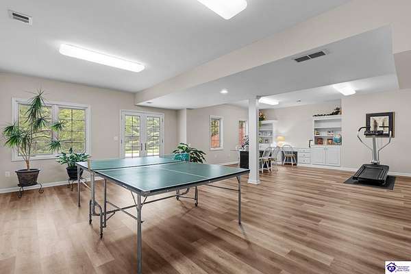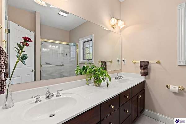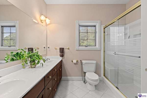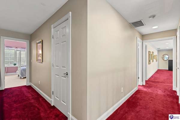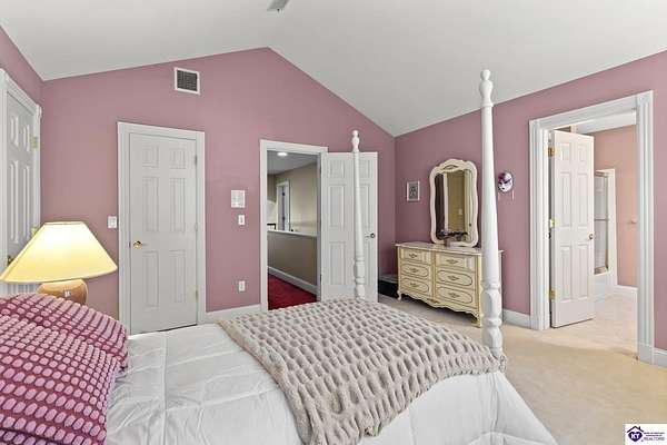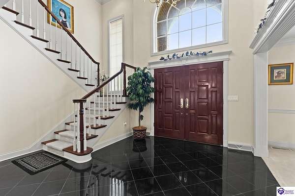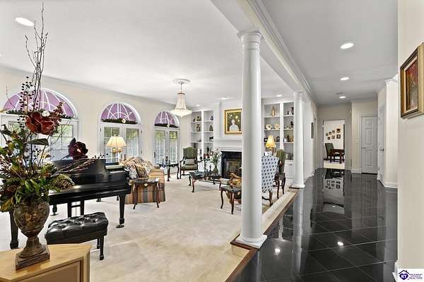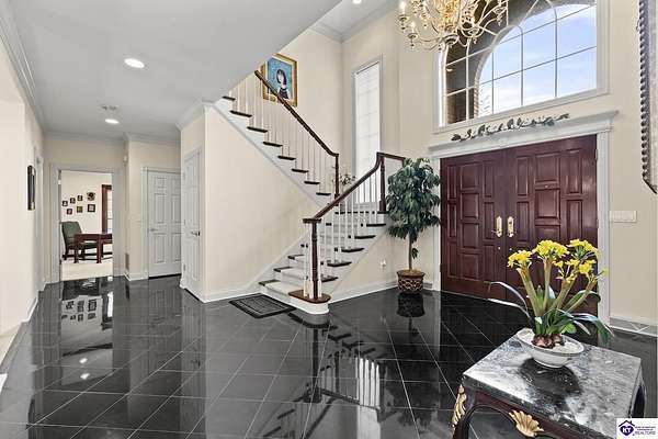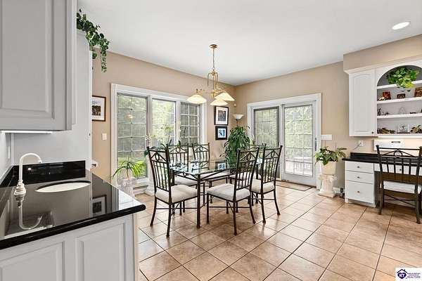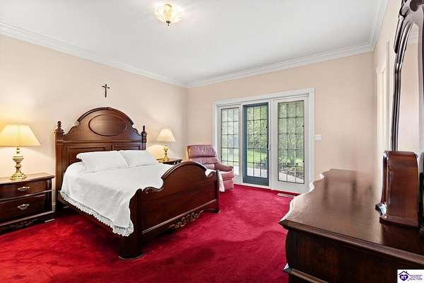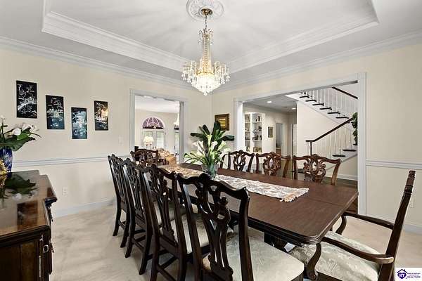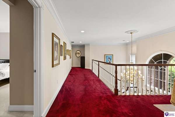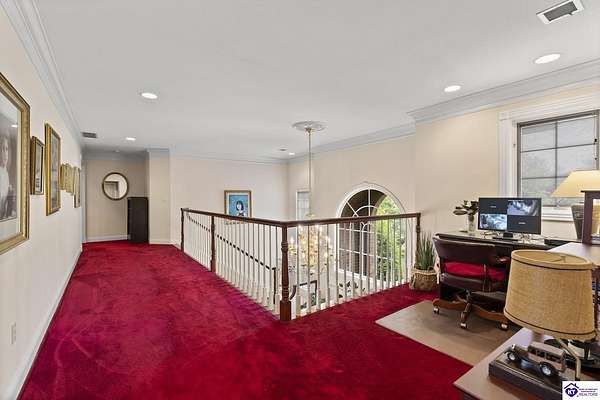 Welcome to this stunning custom built estate sitting on nearly 10 private acres in the heart of Elizabethtown. From the moment you step into the grand foyer, you're greeted by a dramatic chandelier and soaring ceilings that create an unforgettable first impression. The home flows seamlessly into a formal living room that sets the tone for both elegance and comfort. Designed for luxurious, multi -generational living, this home features a spacious primary suite and two additional en-suite bedrooms, each with its own private bathroom and walk-in closet. In total, there's four generously sized bedrooms, a home office, plus two versatile bonus rooms that can easily be converted into additional bedrooms, home gyms, media room or creative spaces. On the main level, a dedicated office provides the perfect work from home setup, while the walk-out basement includes yet another finished room (7) and the massive basement opens to its own private patio, offering endless possibilities for gatherings and relaxation. Thoughtfully designed with convenience in mind, the home features two staircases one at each end of the house for easy access to the upper level. There's two balconies that overlook the main floor and three separate exits to the back patio. This home has an impressive kitchen with a large central island, with lots of cabinet space, and a charming breakfast nook whose doors open directly onto the back patio perfect for morning coffee with a view. Outside, enjoy the serenity of nearly 10 acres surrounded by mature trees, all while being just minutes from major shopping centers and restaurants. There is also a separate detached garage with electricity in the back woods that could be used as additional storage or a workshop. Meanwhile, two geothermal systems serve the main house, ensuring energy-efficient comfort year-round. With extensive storage, generous living areas, and timeless craftsmanship throughout, this exceptional home offers the perfect blend of luxury, privacy, and practicality.
