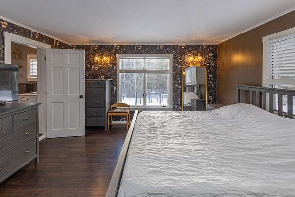 Welcome to this inviting 3-bedroom, 2-bath contemporary home in Warren, where modern comfort meets the natural beauty of Midcoast Maine. Ideally located with easy access to Rockland, Thomaston, and nearby coastal amenities, the property offers a balance of convenience and outdoor living. Set on over 2 private, wooded acres, the home features a peaceful backyard with a scenic farm pond that attracts local wildlife, including deer, birds, and the occasional heron. Mature trees provide shade and privacy, while newer plantings add seasonal color. Inside, the open-concept layout creates a comfortable and connected living space. The kitchen flows seamlessly into the living area, centered around a cozy wood-burning stove. Direct access to the back deck extends the living space outdoors. The first floor includes two bedrooms and a full bath, while the second level offers an additional bedroom and bath, ideal for guests or a home office. A dedicated laundry/mudroom adds everyday functionality. Outside, the back deck overlooks the yard and pond, creating a perfect space for relaxing or entertaining. A detached two-car garage with loft storage provides ample space for vehicles and equipment. With its private setting, flexible layout, and proximity to the coast, this property offers a wonderful opportunity to enjoy Maine living.