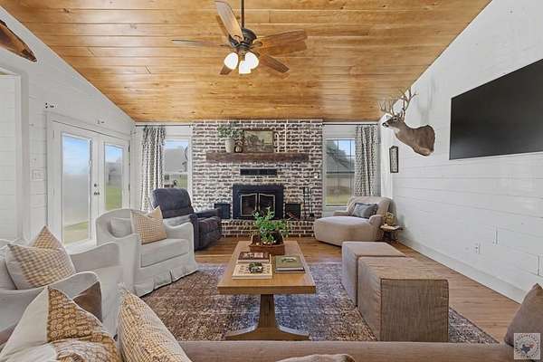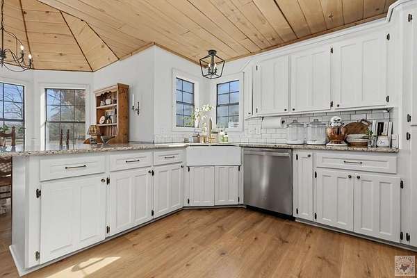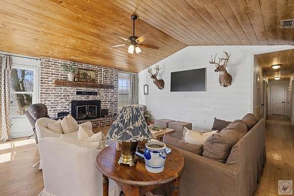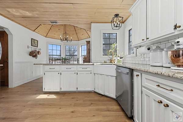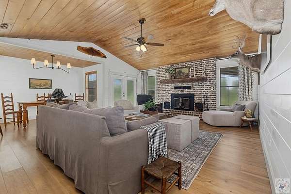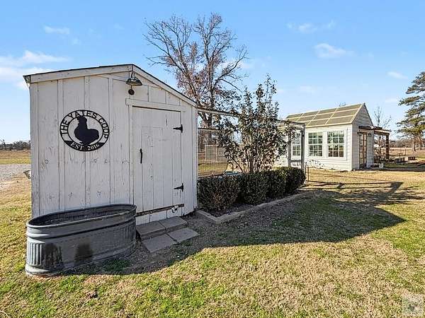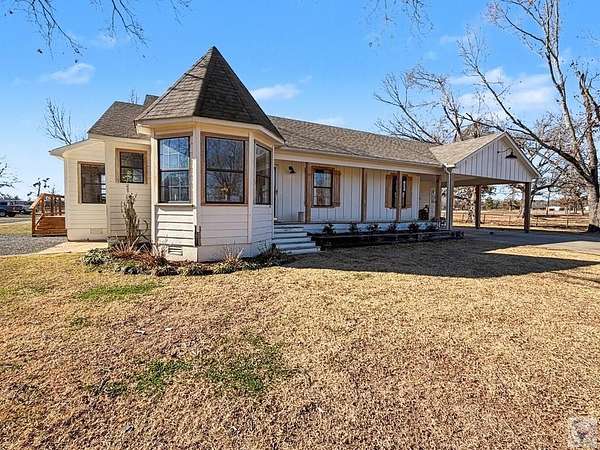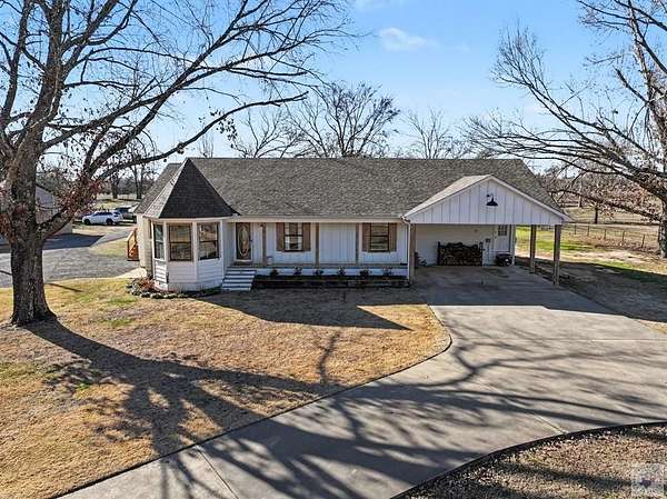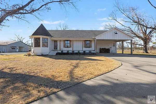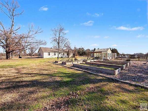 Charming 4-bedroom, 2-bath farmhouse nestled on 14.44 acres, offering space, comfort, and endless possibilities for country living. The spacious living and dining area features a cozy fireplace with a wood-burning insert, creating a warm and inviting atmosphere. Neutral tones and hard-surface flooring throughout provide a clean, timeless look and make everyday maintenance a breeze. The updated kitchen boasts granite countertops, new stainless steel appliances, and abundant natural light, flowing seamlessly into the dining nook-perfect for casual meals or morning coffee. The primary suite is a true retreat with a generous walk-in closet and a spa-inspired ensuite bath featuring a custom glass tile shower and a relaxing soaking tub. Outdoors, the property is fenced and cross-fenced, ideal for livestock and horses. Additional features include a chicken coop, a light-filled greenhouse with pergola, and raised garden beds for flowers or vegetables-perfect for those dreaming of a homestead lifestyle. A 40x70 open barn/workshop offers exceptional versatility with five horse stalls, a work area, tack room, and an office that is heated and cooled with a mini-split. This property offers the perfect opportunity to slow down, enjoy wide-open spaces, and create the homestead lifestyle you've been dreaming of.