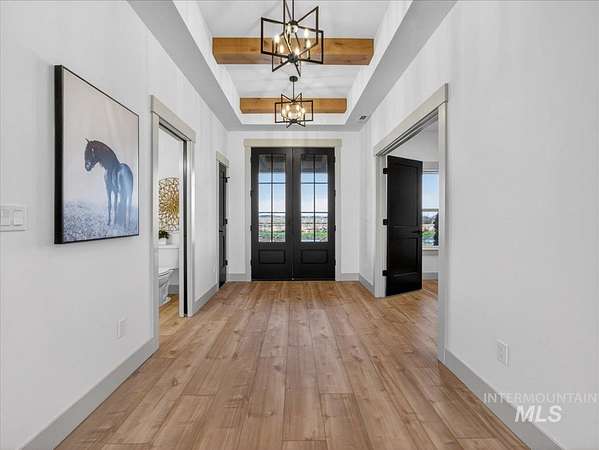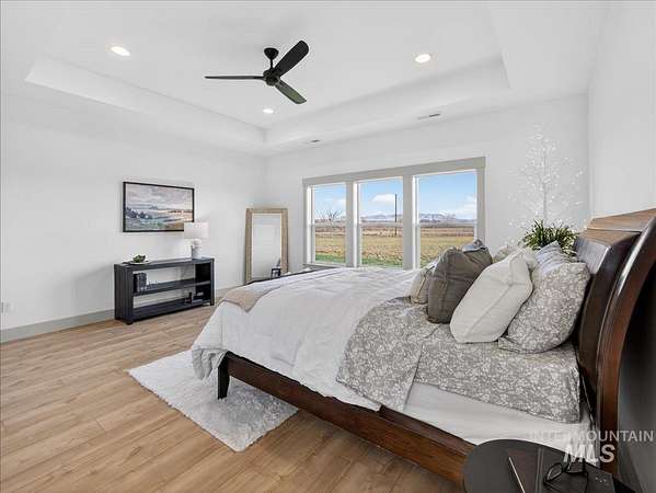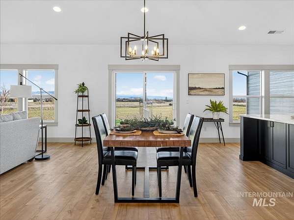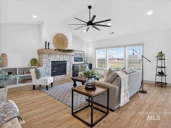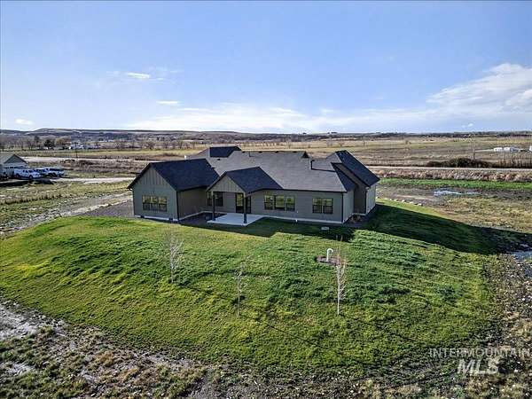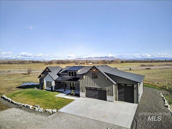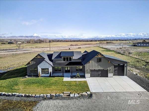 Discover luxury country living at its finest in this exceptional Pathway Builders new construction home, on 5.38 acres in Emmett, Idaho. Offering 2,985 sq ft of modern elegance, this thoughtfully designed residence features 4 spacious bdrms, 2.5 bths, a dedicated office & a highly versatile upstairs bonus rm-perfect as a 5th bdrm, craft rm, or additional living space. The main living area makes a striking impression w/breathtaking vaulted ceilings, a stunning fireplace & an expansive picture window that floods the space w/natural light while capturing panoramic mountain views. At the heart of the home, the chef's kitchen showcases a gas cooktop/oven, elegant quartz countertops & a spacious walk-in pantry, ideal for everyday living & entertaining. Step outside to the covered patio, the perfect setting to unwind, host gatherings & take in Idaho's unforgettable mountain sunsets. An oversized 3-car garage w/ RV bay complements the generous acreage, offering endless possibilities for horses, a future shop, recreational toys, or even an ADU-ideal for multi-generational living. Water rights included, no CCRs or HOA, enjoy the freedom to truly make this property your own. Located near the Payette River, you'll have quick access to fishing, boating & outdoor recreation. Experience the perfect blend of serene country living & modern convenience, just minutes from Emmett, New Plymouth and I-84