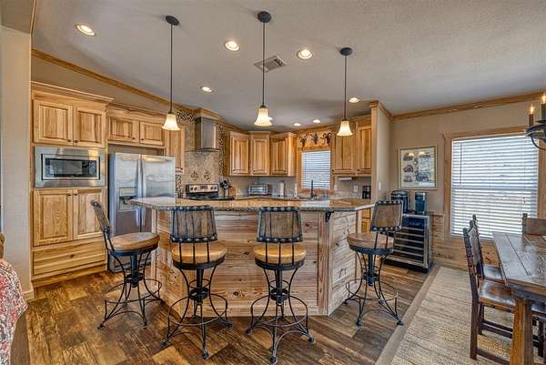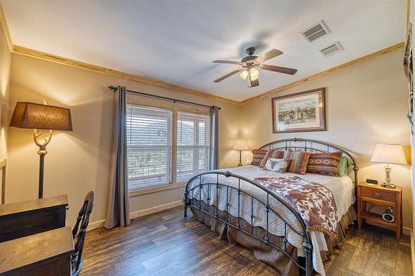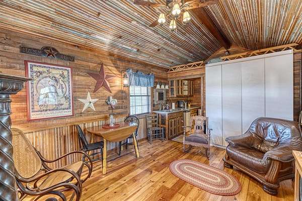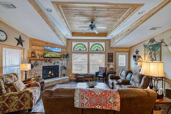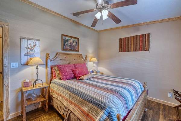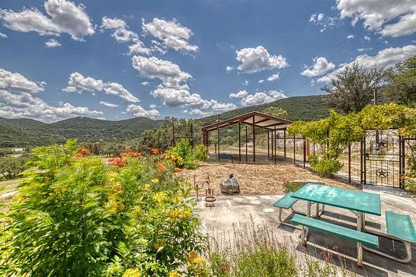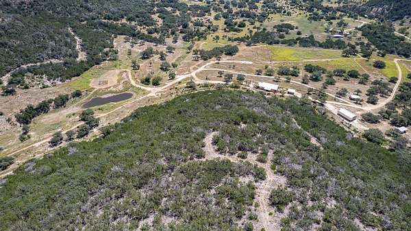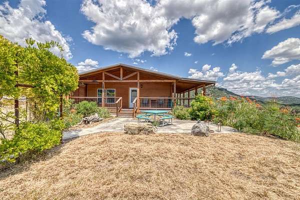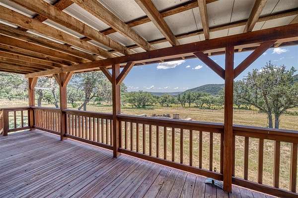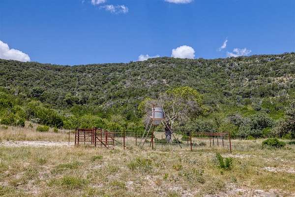 Comanche Canyon Ranch is 225.7 Acres and located near Leakey. Cedar Hollow Creek forms the SE corner and is dammed creating a serene estuary fringed with Sycamore and Cypress trees. A chain of hills form the west and north boundary with rolling Oak studded valley below. Two box canyons with permanent springs in one feed a sizable year round pond for abundant wildlife. Wildlife includes Aoudad, Whitetail, Axis and a herd of Sambar. ATV trail ascends 2200 ft and traverses the ridge in both directions. Improvements include 3BR/2B beautifully furnished home with long views and courtyards, 30X50 insulated barn with rustic elegant guest quarter and loft bedroom, equipment, guest cabin with covered porch and firepit, high-yield well is housed with (2) 5000 gal. storage tanks, (2) 1000 lb. corn feeders under pen, large stands, cleaning station, RV hookup, with all buildings guttered for potential rain water harvest. This turnkey hunting/recreational ranch is perfect for a family getaway but be warned you will want to make it your permanent home! $2,500,000.