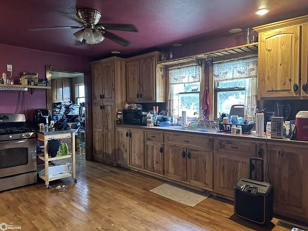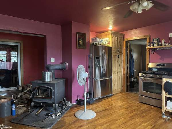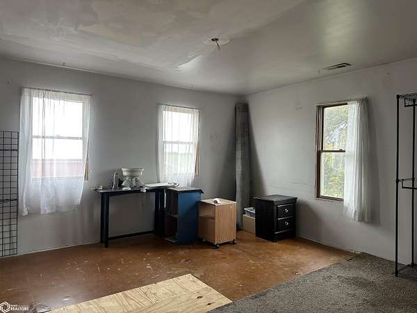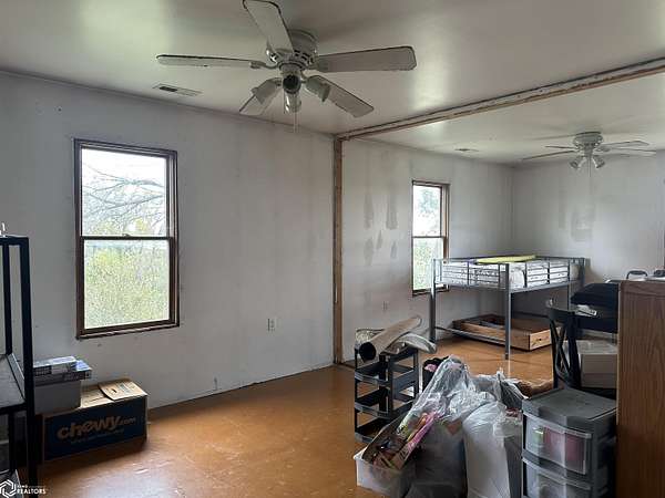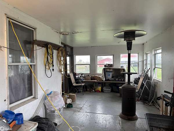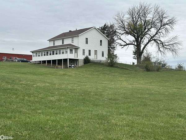 This acreage is located between Corydon and Chariton at the intersection of Vale Road and Highway 14, offering a nice number of acres with very little gravel driving necessary. The large home with 4+ bedrooms, full basement, and wrap-around 3-season porch, has a tremendous amount of square footage that is adaptable to fit your needs. Forced air as well as wood stove for flexible heating options. Pole building serves as garage and storage. Barn with horse stalls is just south of home with nice setup for horses and hay storage. Attached building for more storage needs and tack, as well as lean-to shelter. Pasture is fenced with a pond. So many possibilities with this property!