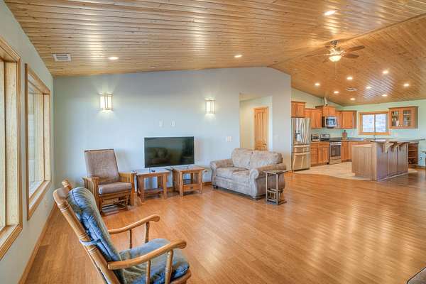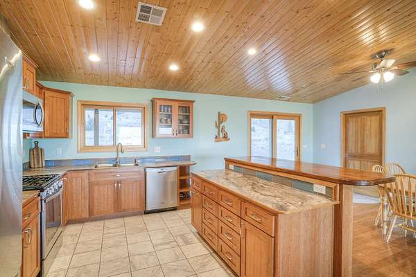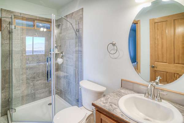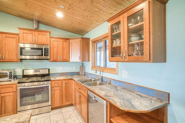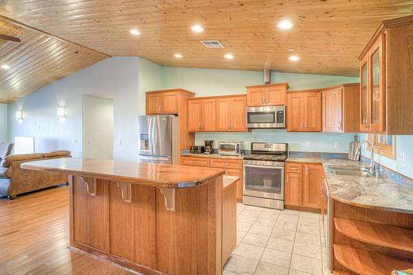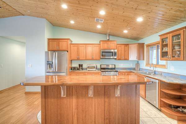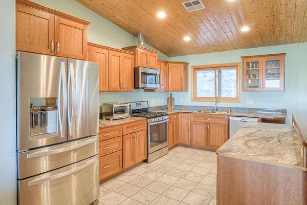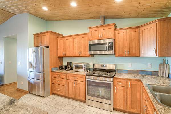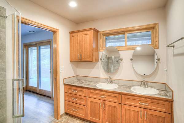 - Custom Cabinets, Double Sink, Kitchen Island, Shower Enclosure, Vaulted Ceilings, Walk-In Closet