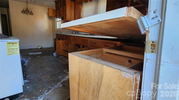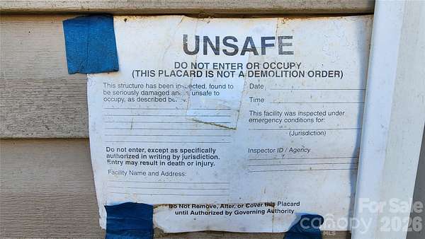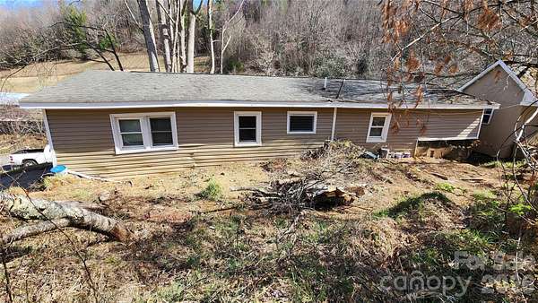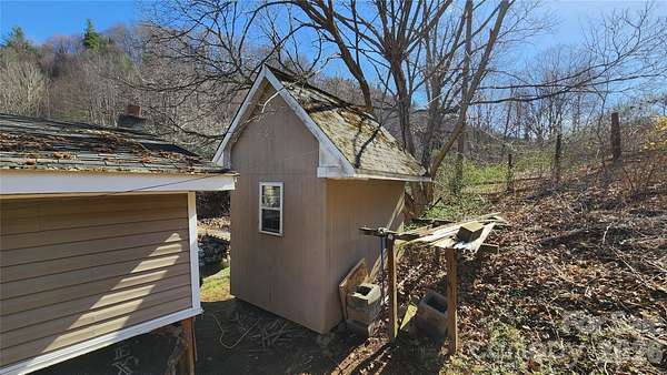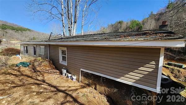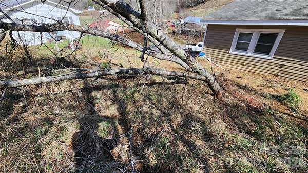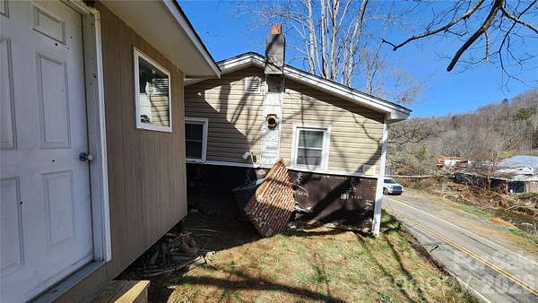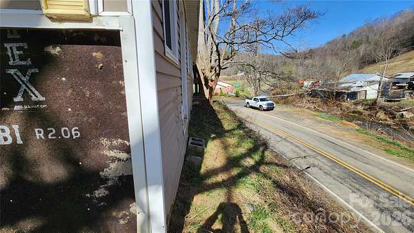 Mountain, valley and creek view lot on paved state road in northwest corner of Ashe County. Can hear rushing creek waters down below across the road. Shown by appointment only. Hold Harmless Agreement required to be signed by all who enter property and sent to listing broker before any appointment is approved. Has a landslide-damaged house on the lot for which entry is prohibited due to safety concerns. House is considered of little value. Do not attempt to enter house or shed. Walk around lot at your own risk - difficult to walk around lot due to mounds of landslide which occurred during Hurricane Helene - very uneven surfaces. Take 1-2 walking sticks with you to help balance. Steep driveway has no turnaround due to house being knocked about 30 ft. off its foundation by landslide. Park on the other side of the paved road and walk up steep driveway - be careful here. No representation made about viability of water source, which was stated in previous sold MLS as a shared spring, and No representation made about the viability of septic system which was stated in previous sold MLS as a 3 BR septic. No minimum house size square foot to build back. Landslide has covered most of the about half acre lot. This property is a fall hazard - enter onto lot at your own risk. SOLD AS IS.