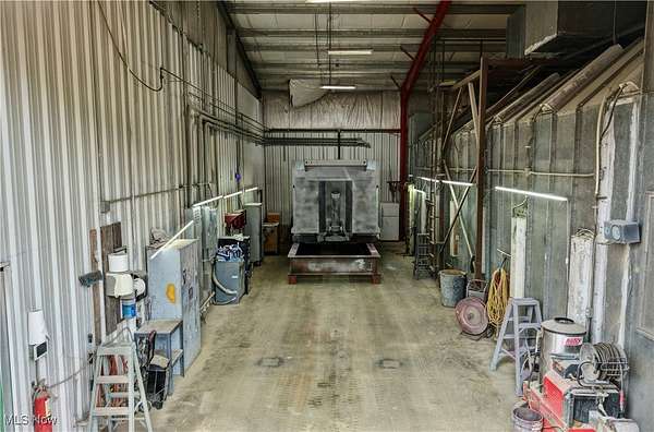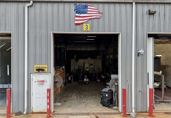 Located in West Lafayette with convenient access to US-36 and I-77, this 2.171-acre property features two industrial buildings, an office, and a block garage, offering a wide range of potential uses. * Main Building (110' x 60') * 5 bays total * Bay #5: BlastOne blast booth (16'W x 14'H x 50'L) with Clemco 6 cu. ft. blasting pot, dust collector, and new reclaim system * Bay #4: 16'W x 14'H x 50'L with 1.2 mil. BTO bake cycle oven (heats to 140 degrees with cross draft) * Bay #3: Open bay with 9'x12' mix kitchen, utility room, and restroom * Bay #2: Same as Bay #4 with bake oven setup * Bay #1: 60'x20' open bay * Bays 1-3: 12'x14' overhead doors | Bays 4-5: 14' doors + 20'x14' overhead doors * Steel frame, open span construction with 16'x32' cold storage addition * Heated with in-floor radiant heat * 480V 3-phase electric service * Includes 40' container with 25hp Quincy air compressor Second Building (40' x 100' + 19' x 29' lean-to) * 5 bays with overhead doors * Gas ceiling space heaters, air lines, and restroom * Office Building * Main office + 2 private offices * Break room, restroom, and utility room * Central air and natural gas heat Utilities: Natural gas, central air, water well, and septic This is a rare offering with tremendous versatility-perfect for industrial, fabrication, service-based, or storage use. Seller requests a no-compete clause for existing customers only.