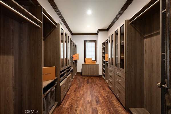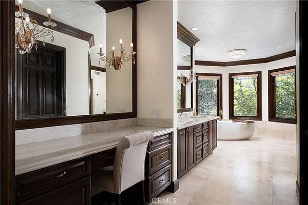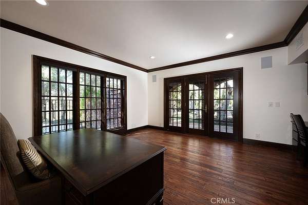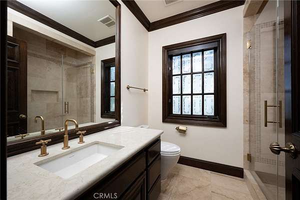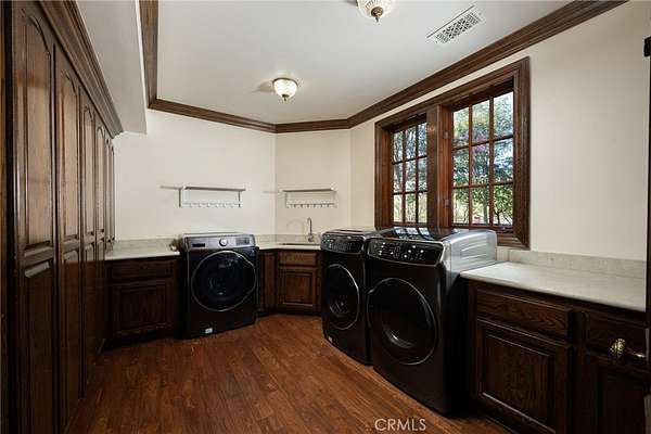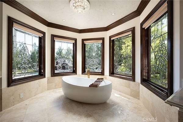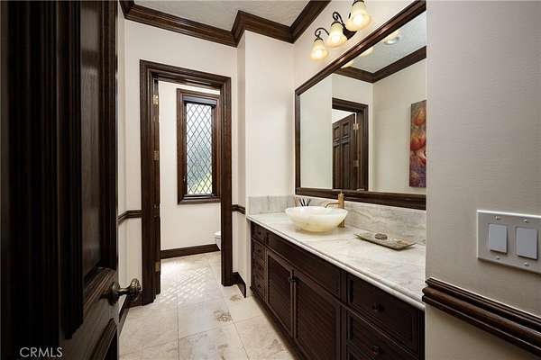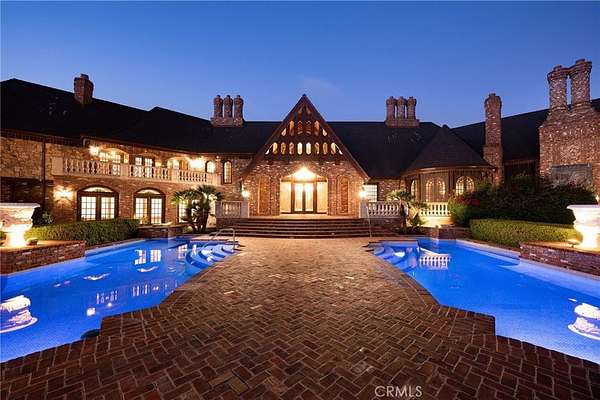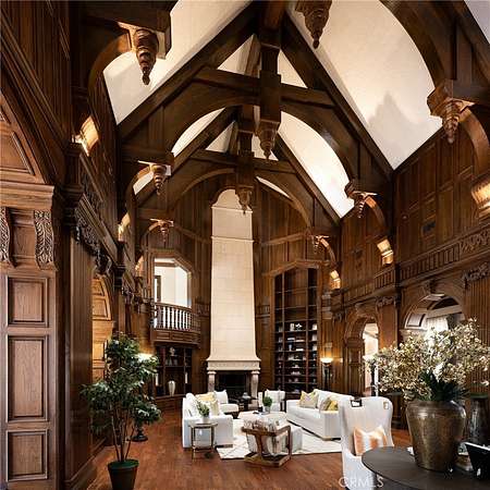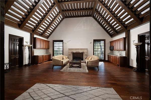 Step into a world of timeless elegance and modern indulgence at this extraordinary private estate nestled on over 6 acres of private behind the gats of Coto De Caza in the Los Ranchos Estates. Completely restored and remodeled in 2018, this one-of-a-kind property blends grand architectural charm with resort-style amenities, offering the ultimate retreat at the comfort of your home. As you enter the main residence, you're welcomed by a breathtaking foyer that feels like it belongs in a storybook-- hand-carved woodwork, soaring ceilings, and rich details reminiscent of the halls of Hogwarts. The craftsmanship throughout is truly rare and awe-inspiring. The main home features 4 bedrooms, thoughtfully laid out for both comfort and privacy. On the main level, you'll find two generously sized bedrooms, while upstairs awaits an expansive primary suite. The master bedroom includes a his-and-her closet setup--her side boasting a custom lounge-style space so spacious it could double as a personal fitting room or accommodate two queen-sized beds for young children. A second primary suite is tucked away in a private wing, accessible via its own stairway.