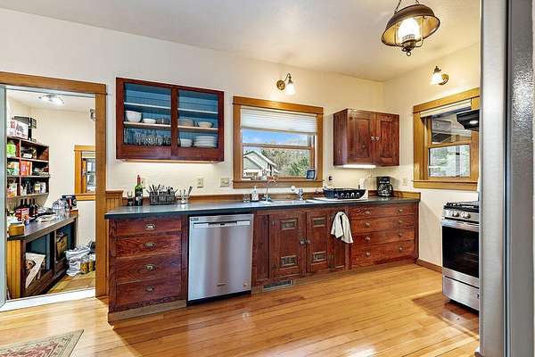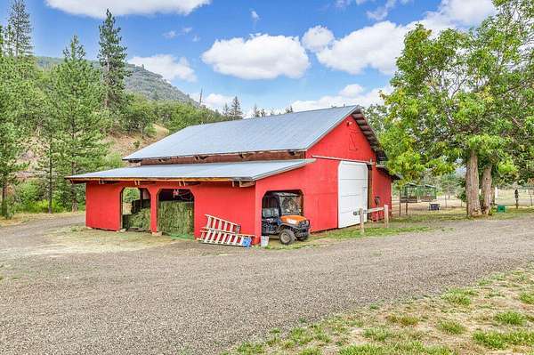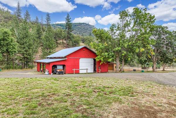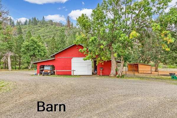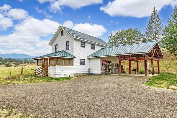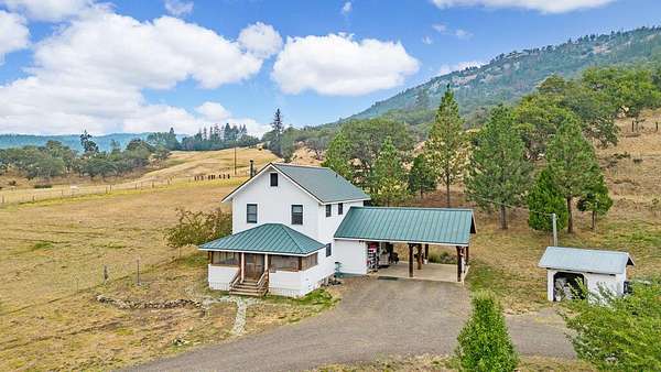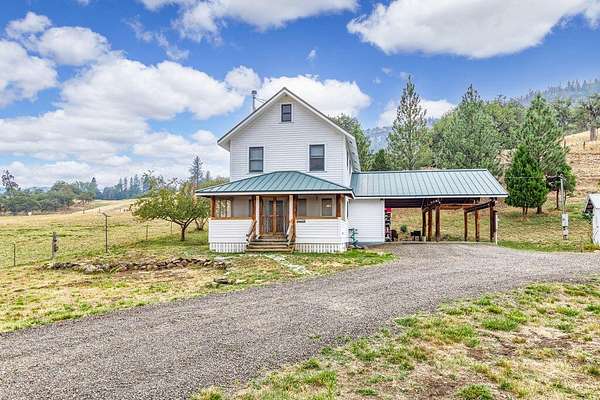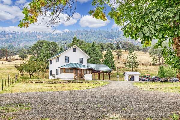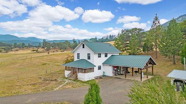 Privacy in Southern Oregon less than 20 minutes from downtown Ashland. Bring your horses & all the animals! Private Farm house and Ranch Buildings! Just South of Ashland in SW Oregon. Over 45 Acres. Craftsman style finishes, stained glass accent, lg enclosed in front porch w/lots of windows. Red Fir floors & staircase, wood windows, solid wood doors, 2 bdrms downstairs, 2 bdrms & bath upstairs + finished attic area that is not included in the SQ FT w/new carpet. Country style kitchen w/pantry. Laundry/mud room with laundry chute. Cement carport. Pastures used for hay & grazing. Adjoins BLM land for miles of trails. Seasonal creek, 40X48 Barn, 2nd level loft area, Workshop w/ finished rm w/power & 1/2 bath. The workshop area has 14' door & RV hook ups, Enjoy fruit trees & fenced garden area.