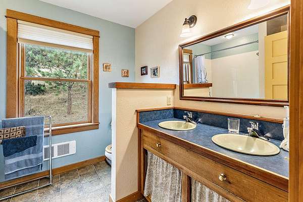 - Dual Flush Toilet(s), Laminate Counters, Linen Closet, Open Floorplan, Pantry, Primary Downstairs, Shower/Tub Combo, Solid Surface Counters, Tile Counters, Tile Shower