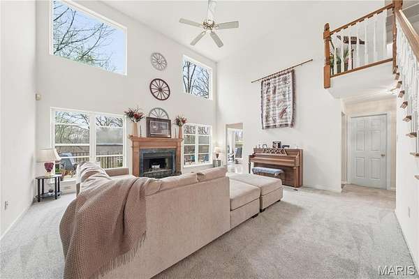 Step inside through the welcoming foyer and take in the breathtaking views offered by floor-length windows that wrap the cozy woodburning fireplace in the great room. The soaring two story ceiling adds an impressive sense of space and grandeur. Just off the entry, you’ll find a versatile room ideal for a home office or sitting area, along with a formal dining room featuring crown molding and double windows.