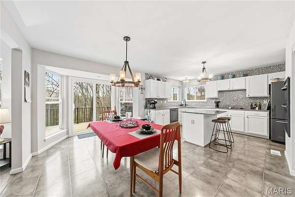 The kitchen is a delight for any home chef, featuring white cabinetry, a corner sink, stainless steel appliances, and generous prep space. A bright breakfast room offers space for a spacious table and chairs, while a convenient main floor laundry room adds to the ease of everyday living.