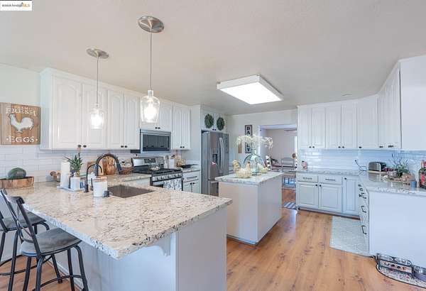 - Breakfast Bar, Dining Area, Family Room, Formal Dining Room, Office, Pantry, Solid Surface Counter, Updated Kitchen