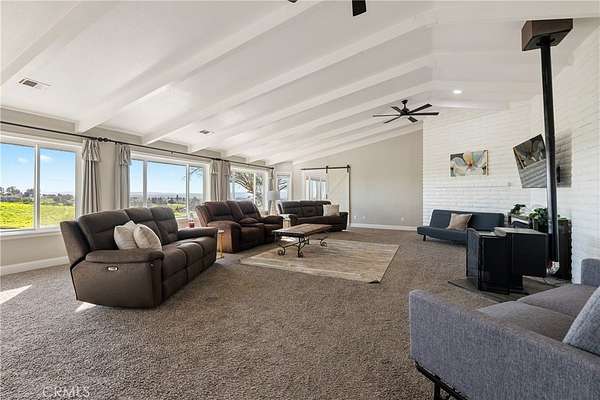 Welcome to 2245 Rancho Lomas Way, a picturesque ranch retreat nestled in the heart of Paso Robles' Independence Ranch community. This expansive 2,260+/- single-level home, set on 10+/- acres, is a sanctuary for those seeking a blend of rustic charm and modern convenience. As you step through the front door, you are greeted by a spacious living room, boasting a wood-burning stove set against a brick accent wall, cathedral ceilings, and stunning views of the wine country landscape. Natural light floods the space, highlighting the thoughtful upgrades and meticulous attention to detail. Adjoining the living room is a dining area seamlessly connected to the remodeled kitchen. Here, culinary dreams come alive with updated cabinets, granite countertops, vinyl plank flooring, and a chic backsplash, all complemented by recessed lighting. The kitchen is a true heart of the home, designed for both intimate family dinners and grander gatherings as the French door opens to the rear yard where just around the corner, an artificial turf patio with a jacuzzi tub invites relaxation and social evenings under the stars. The primary suite is a haven within the home, featuring cathedral ceilings and an attached bonus room--ideal for an office or fitness room--offering inspiring views of the sprawling hills. The primary en-suite bathroom is equally impressive with a tiled step-in shower, a large closet with built-in vanity, and ample cabinetry. The home also includes 2 additional bedrooms, each with vinyl plank flooring and unique touches such as a bonus playroom or study area in the 2nd bedroom, and a Jack and Jill bathroom attached to the 3rd bedroom. The 2-car garage has been converted to a game room (video games are to be included) boasting a full kitchen and separate entrance. The property's exterior is just as meticulously designed, featuring a carport adjacent to a brick patio set amongst refreshed landscaping with recently added fencing for privacy. Equestrian enthusiasts will be drawn to the graded area with single stalls, various fenced spaces, and water connections, offering a variety possibilities to customize and create an equine environment. Owned solar panels and numerous outbuildings, including a Seatrain, provide functionality and opportunity, making this home not just a residence but a lifestyle choice. Embrace the opportunity to own a piece of Paso Robles serene landscapes, where many sunsets may bring peace and a glimpse of the endless potential!