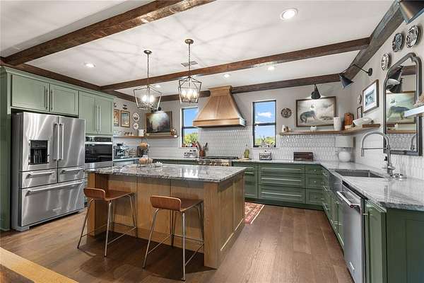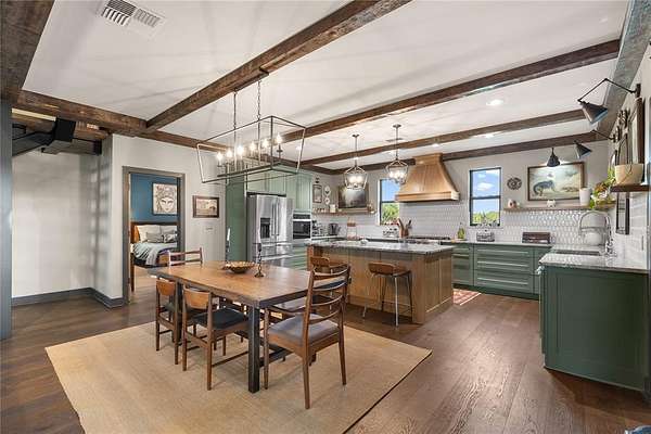 Est $3,724/moStunning 2 bed + loft bonus room, 2 bath, 2 car garage on 2.86 acres. The upstairs loft bonus room makes a great office or potential third bedroom. Perfect mix of comfortable modernism and homesteading. Feels like the ultimate getaway. Moody accents, ample storage. Jawdropping design. Custom cabinetry. quartz counters. Engineered hardwood floors. Designer tile and wallpaper. Large primary with walk-in closet. Dog wash in mudroom. Outdoor kitchen. Gas fireplace and cooktop. Stock pond. Plus so much more!