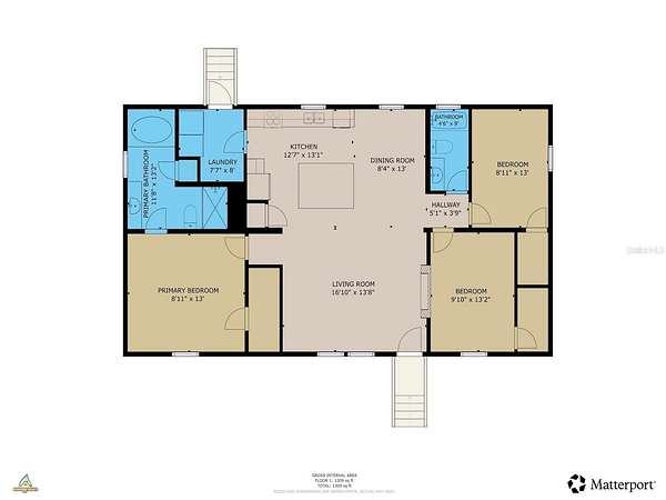 - Bathroom x 2, Bedroom x 3, Dining Room, Kitchen, Laundry, Living Room