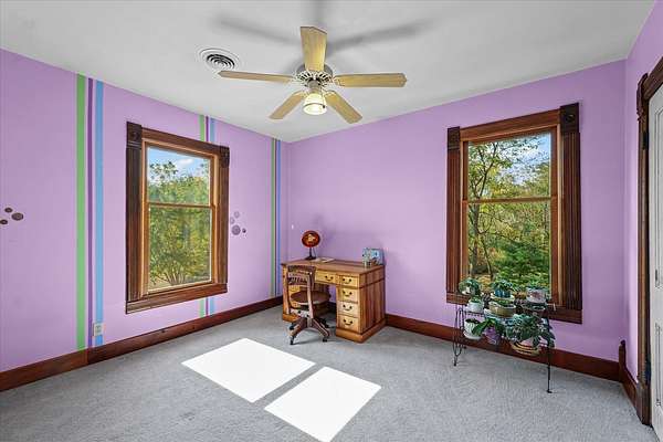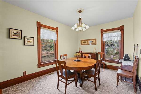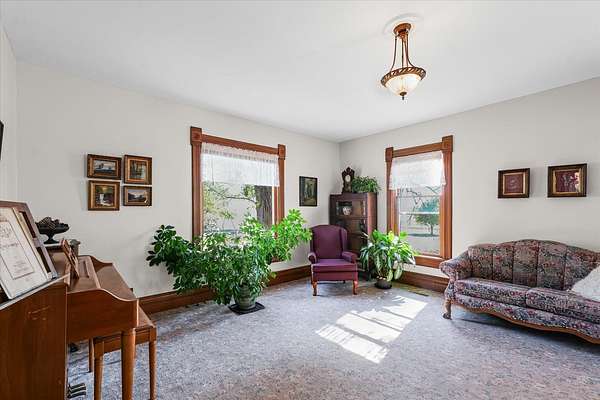 Country living at its best! This beautiful brick home sits on 6 peaceful acres less than 30 minutes from Champaign. Full of character and charm, you'll fall in love the moment you step inside and see the original woodwork, solid doors, and custom hackberry cabinetry-all handcrafted with care. The home offers a formal dining room, spacious attic perfect for a playroom or storage, and even an upstairs balcony for those quiet morning coffee moments. Outside, nature lovers will appreciate over 30 varieties of trees, including apple and pear trees, raspberries, rhubarb, and asparagus-a gardener's dream! With a new roof and septic system, this property blends timeless craftsmanship with current updates. If you've been searching for a private rural retreat with space to roam and endless potential, this one is a must-see.