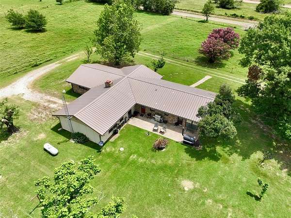 Escape the hustle and bustle of city life and call the Loco Ranch sitting on 2.35 Acres home! Stepping inside this cozy, ranch style home you'll find a spacious living area with a brick fireplace, perfect for cozying up on chilly evenings. Natural lighting from the new, floor length windows flood the spacious living area. The floor plan flows seamlessly into the dining area and the kitchen. The kitchen is complete with appliances, siltstone countertops, and the cutest little dining-breakfast nook. The master suite offers a large space with a luxurious en-suite bathroom featuring double vanities, built in storage space & a walk in shower. Here, you will also find a flex room that can be used as an additional bedroom, home office, hobby room, or additional closet-storage space. The additional, isolated bedrooms on the other side of the house provide plenty of space for family or guests, have great storage closets, and share a full bath. The possibilities are endless with the converted garage potential perfect for a guest suite, home gym, home business, or playroom. Enjoy the benefits of no city taxes while staying cozy and energy-efficient with spray foam insulation in the attic. With both electric and propane available, you have the flexibility in how you power your home. It is also possible to hook up a generator through the electrical panel for those unexpected outages. Stepping outside to the spacious backyard, there are mature trees & a bricked patio that is ideal for al fresco dining, entertaining, a cup of coffee, or hosting a cookout. The fruit bearing trees (peach, plum, & almond) and the chicken coop are both perfect for those looking to live off the land and embracing a sustainable lifestyle. There is also room for a garden to be able to grow your own fruits and vegetables. The workshops on the property have utilities ran to them, providing space for all of your hobbies and projects. Schedule a showing today and experience country living at its finest!