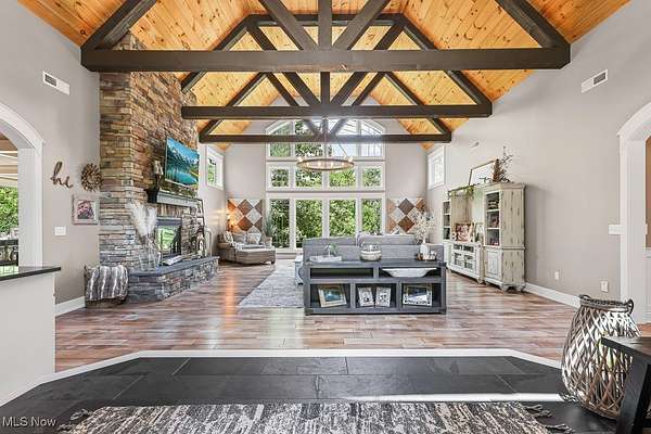 Welcome home to this one of a kind property! Enjoy the peaceful privacy while being so close to major highways and amenities. The detached barn is perfect for any type of collector or animal lover with 5 lower level animal stalls. The woods contain many riding trails, creeks and beautiful scenery for anyone that enjoys the outdoors. There are so many major updates inside and outside of the home. Home Features: Sharon Township, Highland Schools, 11 private acres, Full apartment in-law suite, 2nd floor master, Main floor master, 2 main floor bedrooms, 6 full bathrooms, 1 half bath, 2 story barn with 5 stalls, Fully stocked pond, Tennis court, Finished basement, 3 car garage , Main floor laundry room, Basement laundry room, Radiant floor heat. Please reach out to the listing agent for more information and to schedule your private showing. Seller is a licensed real estate agent in the State of Ohio.