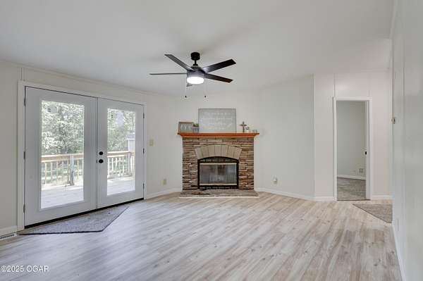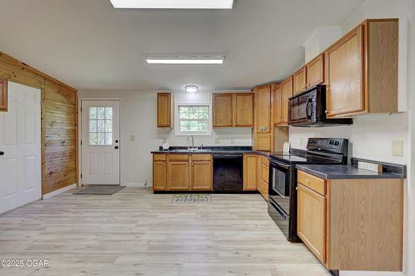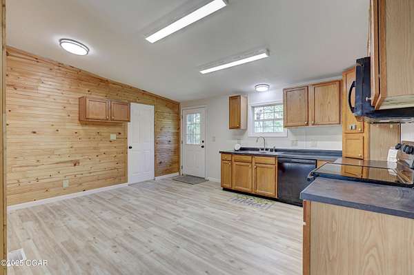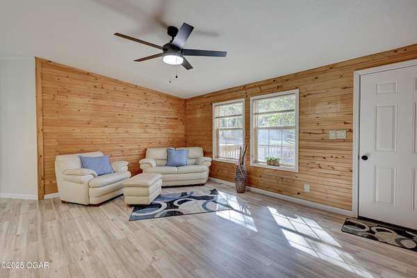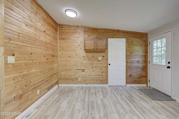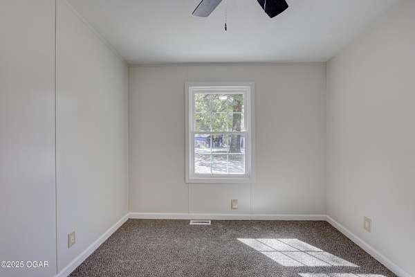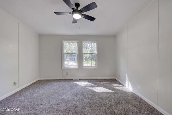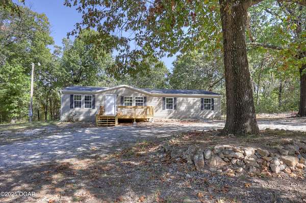 This is a nicely remodeled 4 bed, 2 bath home on 2.29 acres! Its features Joplin schools including Irving elementary. This home features 1512 sq ft, 2 living areas, a large eat-in kitchen, dedicated laundry room, and the primary bedroom is separate from the other 3 rooms giving a nice layout for those looking for privacy. The primary suite is quite large and features its own private bathroom, while the other 3 bedrooms have a nice size and a common bathroom close by. The first living area has beautiful wooden walls and the 2nd living area has a wood burning fireplace. This is OUTSIDE city limits, so there are no restrictions for the 2.29 acres. If you are looking for a hobby farm, space for great hunting, or just want to live just outside the city in your own space, this is surely to be a great fit for you.
