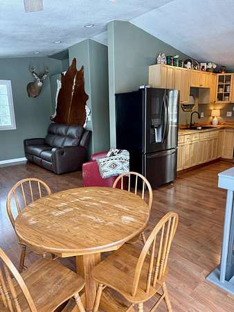This gorgeous log-sided home sits on a peaceful, secluded 2.5 acre lot and could be the perfect starter home you've been looking for! It features a big, welcoming front porch and a sunny south-facing deck that's ideal for soaking up the midnight sun. The house has two full sets of double-pane windows—which, paired with the efficient Toyo stove, keeps heating costs surprisingly low and comfortable. The bathroom comes with a modern Samsung washer and dryer set plus a relaxing jetted tub. The open-concept kitchen flows right into the living and dining areas, making it great for hanging out or entertaining friends and family. It includes stainless all steel appliances. Home is currently rented month-to-month, please respect the privacy of the tenants and don't visit the property without prior coordination.