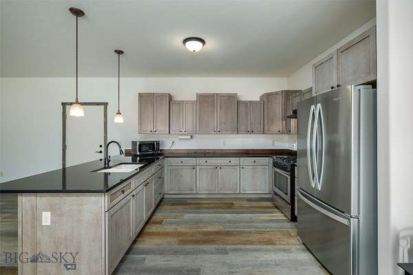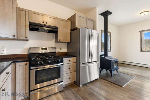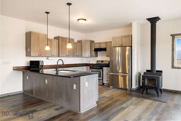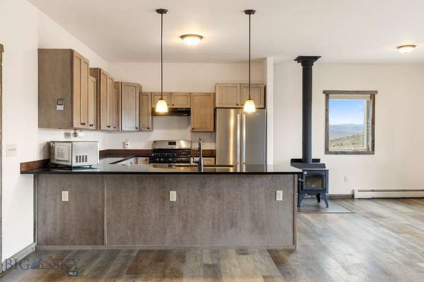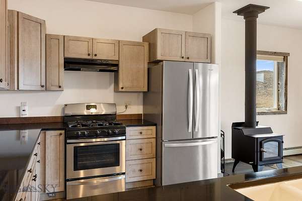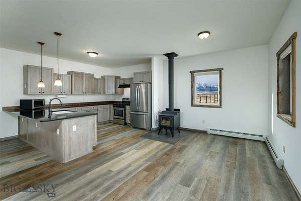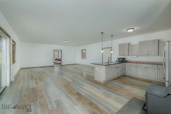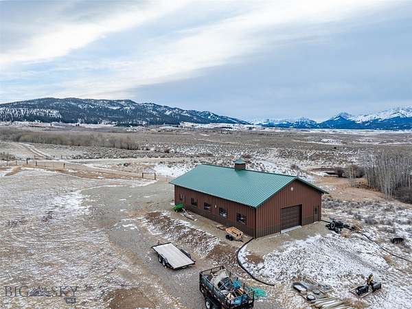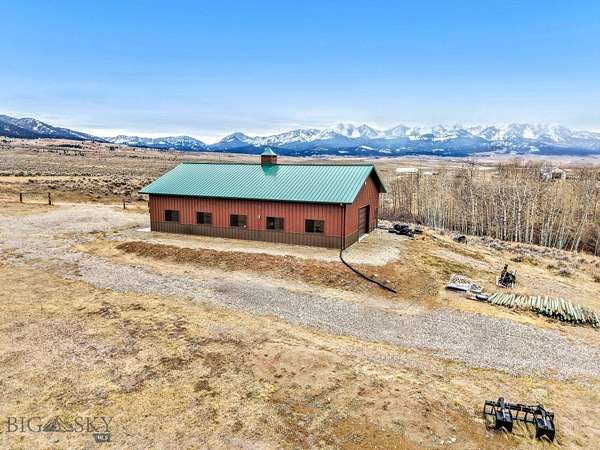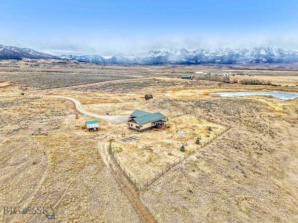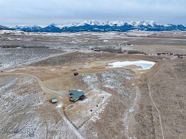 End-of-the-road privacy, 160 acres of big-sky space, and panoramic mountain views, just 13 miles to Bridger Bowl and 28 miles to Bozeman. This rare Montana holding offers multiple potential building sites, exceptional flexibility, and no covenants with no known zoning restrictions (buyer to verify intended use). An additional 640 acres of state land is just down the road, expanding your recreation options even further. The recently renovated 1-bedroom cabin overlooks a private pond and a tributary of Green Canyon Creek, creating a serene setting that attracts abundant wildlife, including elk, mule deer, antelope, and more. Inside, rustic character meets modern comfort with reclaimed barn wood trim, tile flooring, a cozy wood stove, and a kitchen finished with black quartz countertops, high-end soft-close cabinetry with pullouts, stainless steel appliances, and a gas range. The home is equipped for year-round use with on-demand heating and impressive backup power, including a solar system with battery storage, a 5,500W generator, and a 1,000-gallon buried propane tank. A finished 2-car attached garage adds everyday functionality, while a recently built 36' x 60' shop with a heated 11' x 48' workshop inside provides serious space for equipment, storage, and projects. Additional infrastructure includes 50-amp RV service and an RV septic clean-out. Three transformer boxes are already in place for additional building sites across the property. Although the cabin is a 1-bedroom, the septic system is permitted for 3 bedrooms, allowing for a future addition or expansion. Outdoors, enjoy a pond ideal for swimming, recreating, or quiet wildlife watching, plus roughly 2 miles of mowed trails within the property for hiking, exploring, and riding. Surface water rights are included for stock, fish and wildlife (buyer to verify water rights and permitted uses). Utilities include electricity, well, and septic. Dramatic views span the Northern Bridger Range, the Crazy Mountains, and the Bangtail Mountains, delivering a true Montana retreat with real infrastructure already in place.