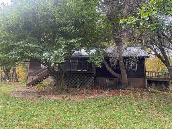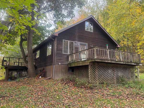 Est $2,089/moNOT A NEIGHBOR IN SITE: Very secluded 3 bedroom 1 bath ranch home featuring 8/12 pitch metal roof, cedar siding, 2 decks, walkup attic that is insulated and has a floor, walk-out basement potential for additional living space. Detached 2 car garage, and 40x60 pole building with half concrete floor. Only about 8 miles from town all wooded acreage.